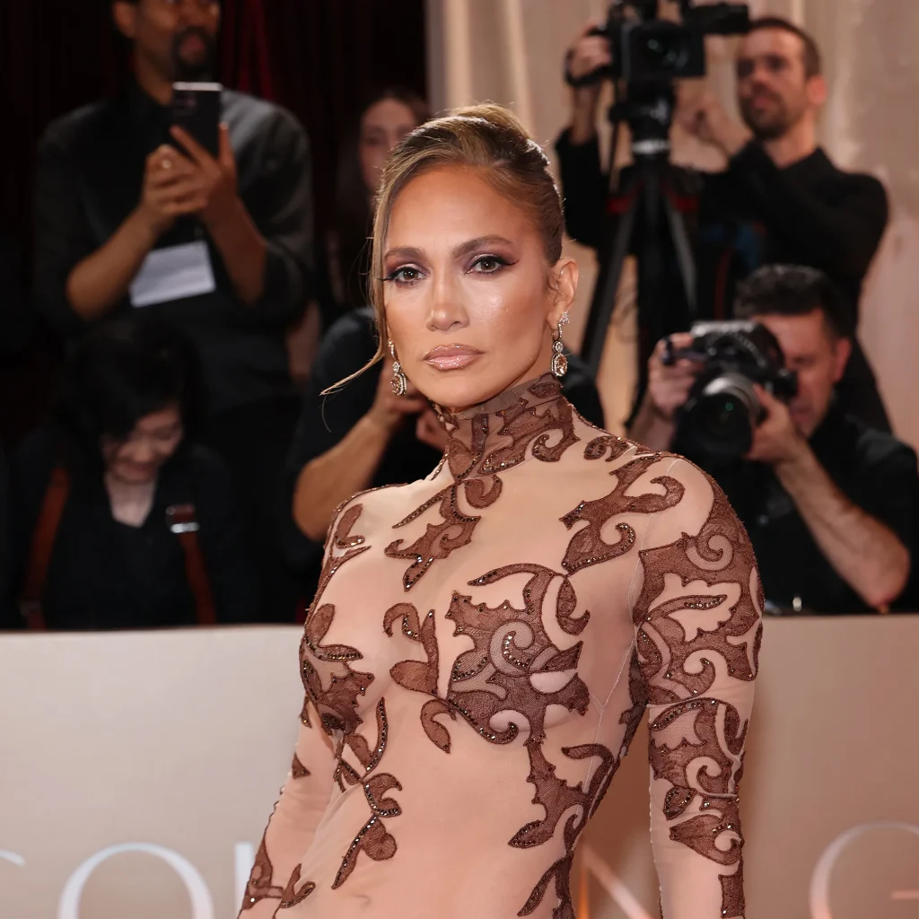 Jennifer Lopez draagt een doorschijnende jurk tijdens de Golden Globes 2026