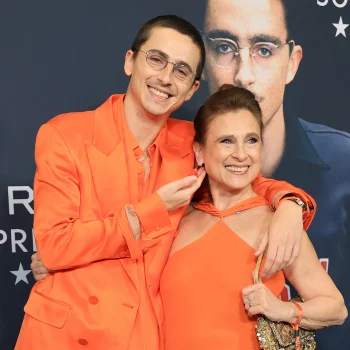 Timothée Chalamet en zijn moeder gaan voor matching looks in deze beruchte kleur