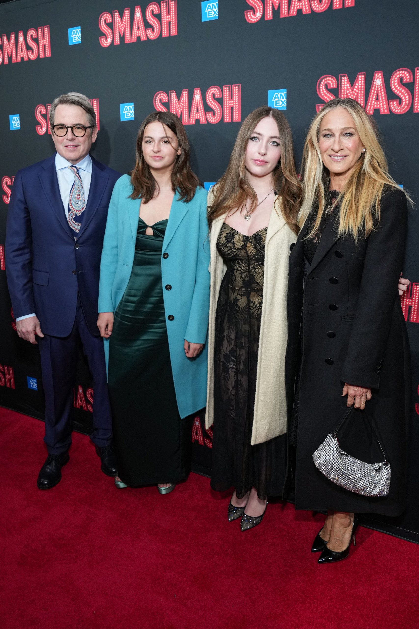 Een andere reden om te blijven, was natuurlijk het culturele leven in New York. (Broderick werkt voornamelijk op Broadway en Parker slaat zelden een uitnodiging van het New York City Ballet af.) Deze week woonde het stel nog de première bij van Smash, een slimme musical over het maken van een slechte musical. Dit deden zij samen met hun vijftienjarige tweelingdochters, die inmiddels oud genoeg zijn om de media-aandacht met hun ouders te trotseren. Parker droeg een jurk met kanten borduursels, terwijl haar dochters blijkbaar in de archieven hadden gesnuffeld. Een blik naar beneden onthulde namelijk turquoise plateauzolen en kitten heels van mesh – duidelijk geïnspireerd op mama’s schoenencollectie.