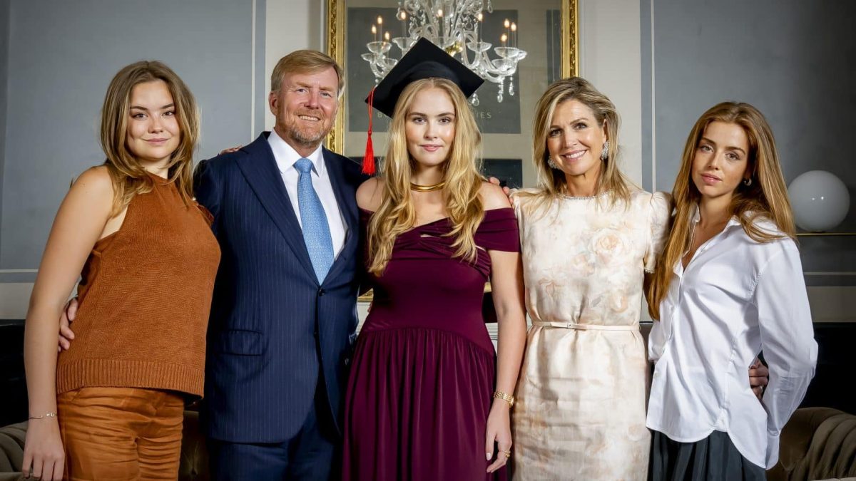 Ook haar zussen zagen er feestelijk uit. Prinses Alexia verscheen in een witte blouse met een zwarte rok van Maje (die ze ook op Koningsdag 2025 droeg), met als opvallend detail de sticker op haar telefoon met de tekst ‘Matcha Princess’ waarmee ze destijds viral ging. Prinses Ariane verscheen in een chic cognackleurig pak, maar voor deze nieuwe foto heeft ze haar jasje achterwege gelaten. Daardoor zien we nu een gebreide haltertop in dezelfde kleur.