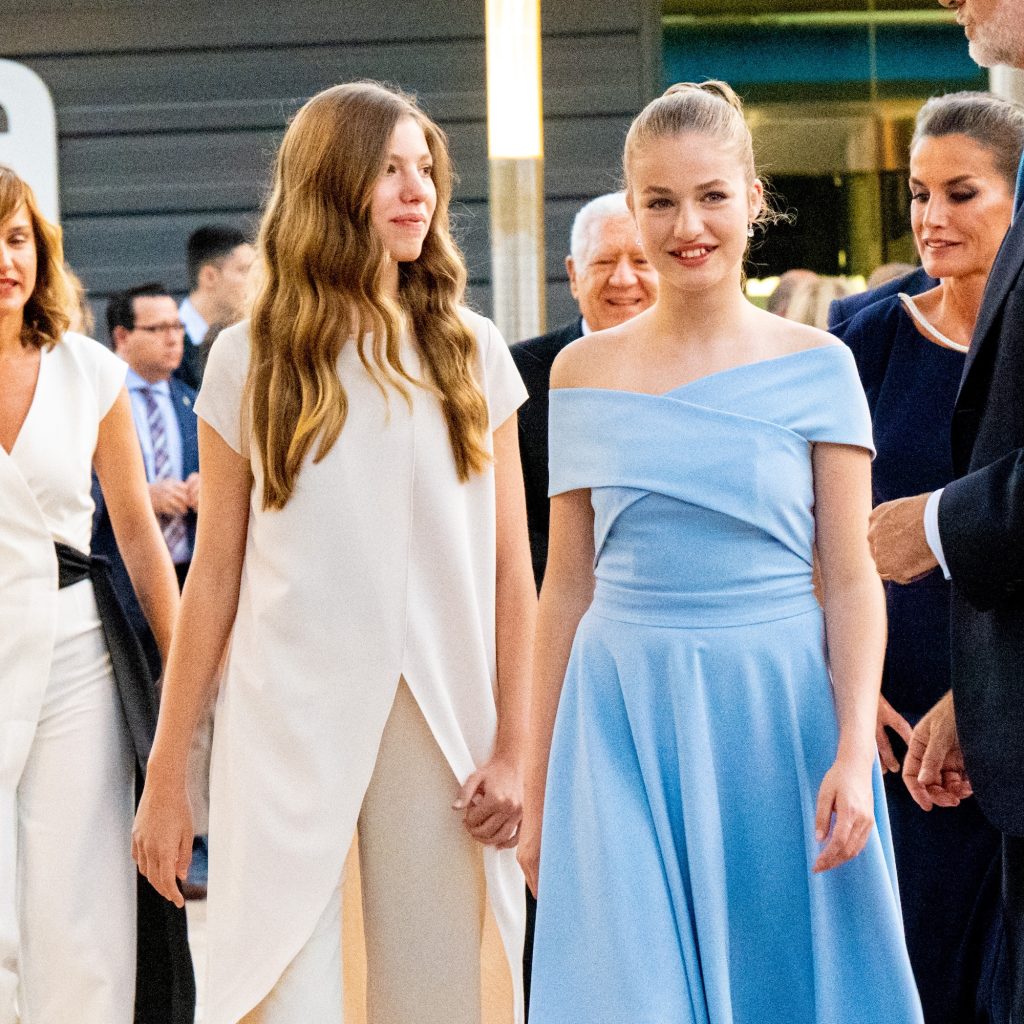 Spaanse prinsessen Leonor en Sofia stralen naast moeder Letizia in chique avondlooks