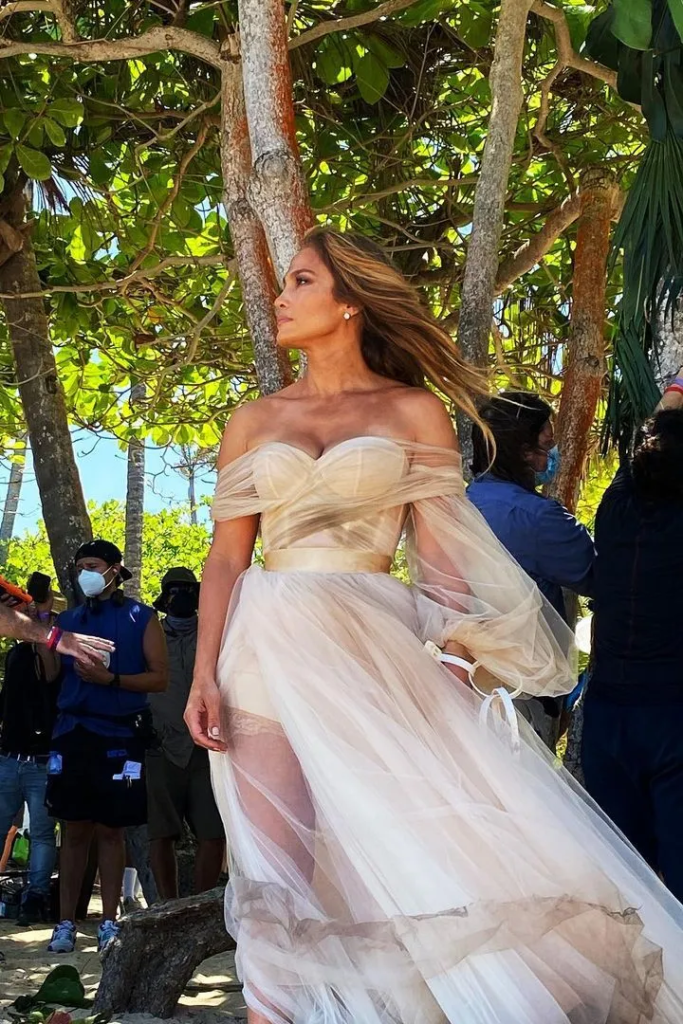 In haar nieuwste film Shotgun Wedding is Jennifer Lopez opnieuw de bruid. Ze geeft deze keer niet het jawoord aan Ben Affleck, maar trouwt met Tom (gespeeld door acteur Josh Duhamel) op een tropisch eiland. Hoewel de film in het teken staat van het hectische huwelijk tussen de twee personages – aangezien het koppel gegijzeld wordt – gaat de aandacht vooralsnog vooral uit naar de prachtige bruidsjurk die JLo draagt. Die is namelijk van Galia Lahav, de Israëlische designer die ook de bruidsjurken van onder anderen Beyoncé, Daphne Groeneveld en Paris Hilton heeft ontworpen. Lopez droeg op haar eigen bruiloft(en) overigens creaties van Ralph Lauren en Zuhair Murad.