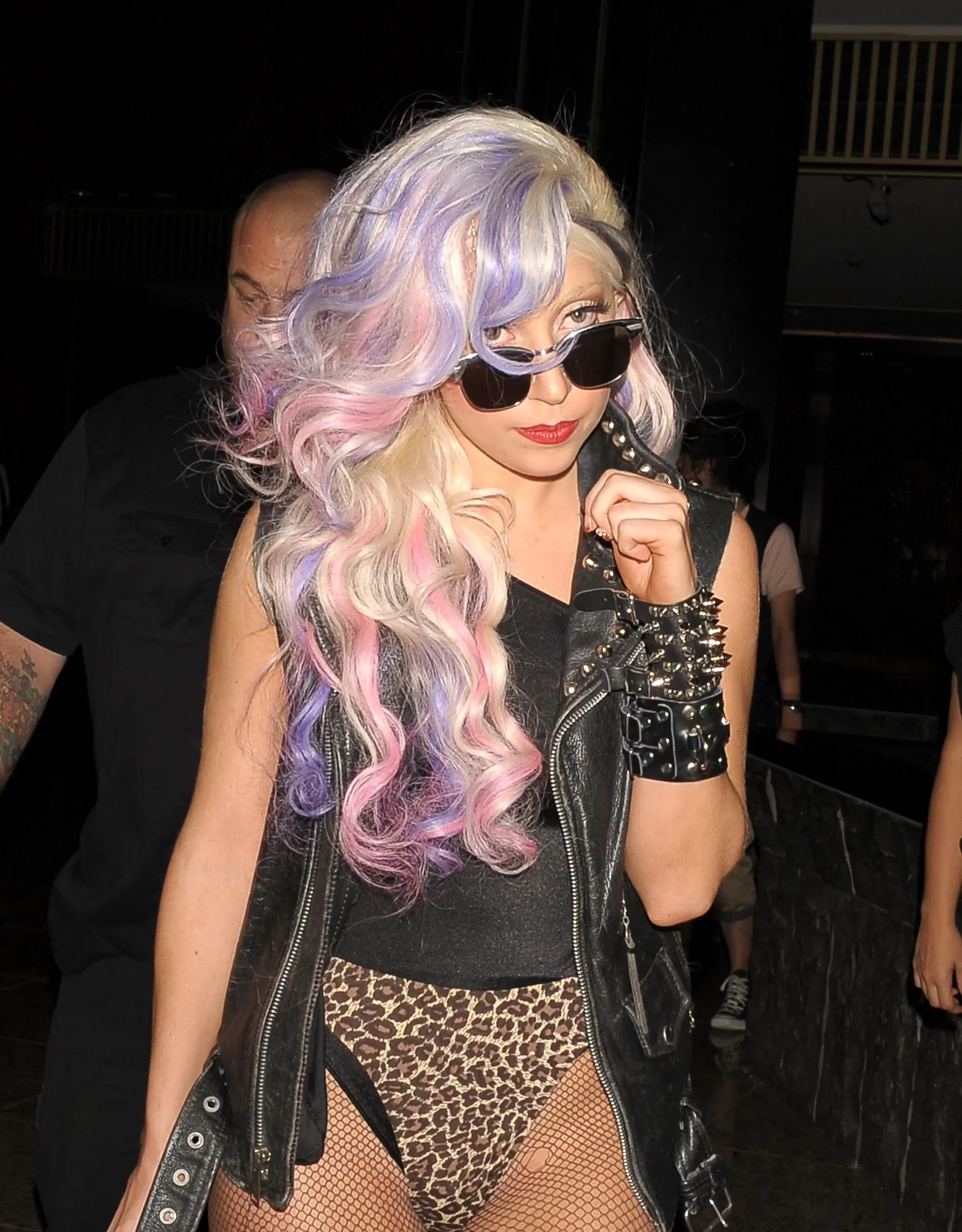 Dit tv-optreden was een voorproefje van Lady Gaga’s avant-gardistische stijl. Haar gigantische kawaii-haarstrik en kristallen schouderstuk is hoe we haar leerden kennen. Om de look compleet te maken, draagt ze uiteraard een grote kristallen ring.
