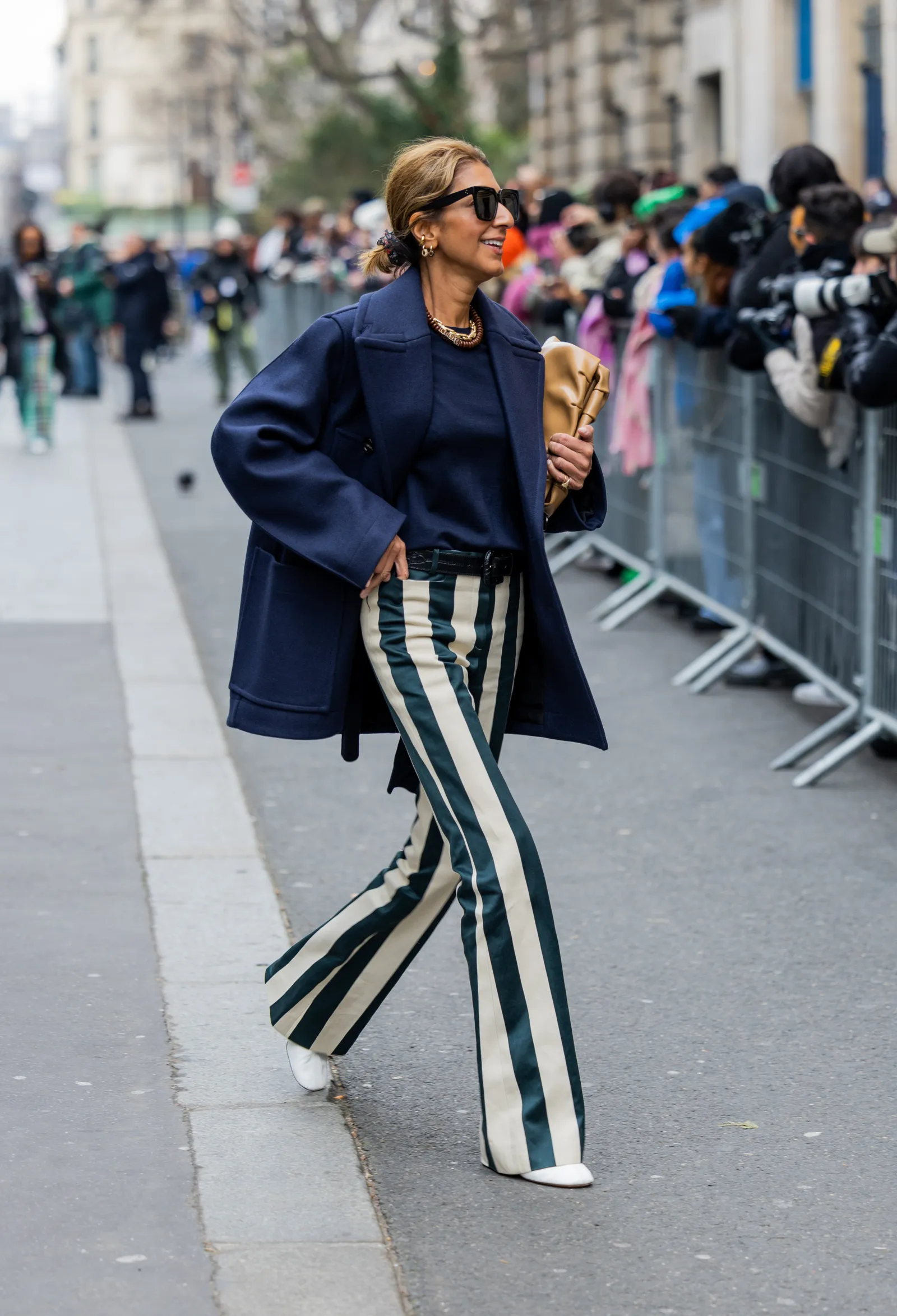 Omdat de zomer in aantocht is, gaan we natuurlijk wel op zoek naar gestreepte broeken met een vrolijke tint. Wat dacht je bijvoorbeeld van de knallende kleur fuchsia of citroengeel, net zoals artist en influencer Sofia van Moser Leitão draagt. Of ga net als Lisa Aiken van Vogue US voor knalblauw. Laat je inspireren door verschillende voorbeelden hieronder.