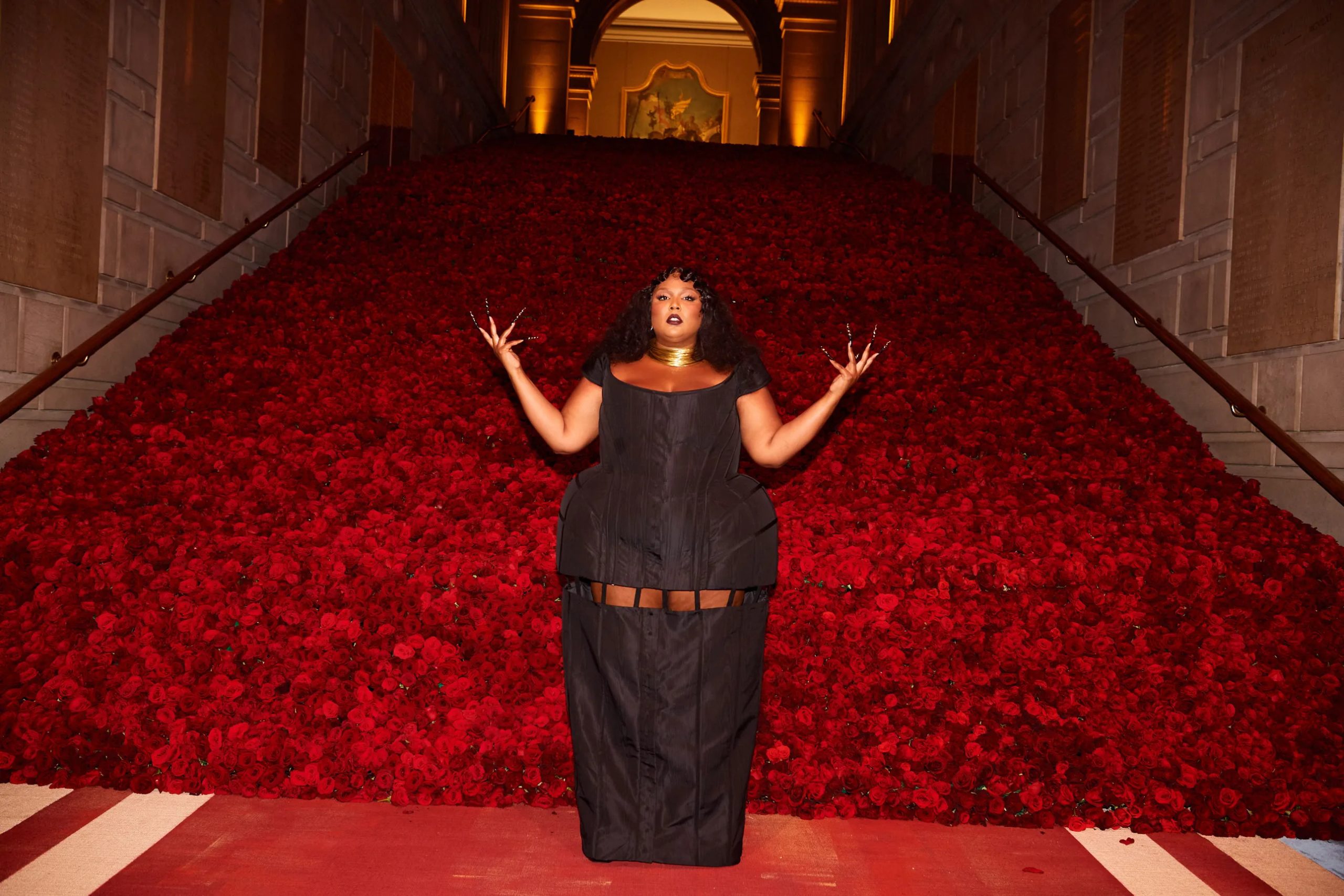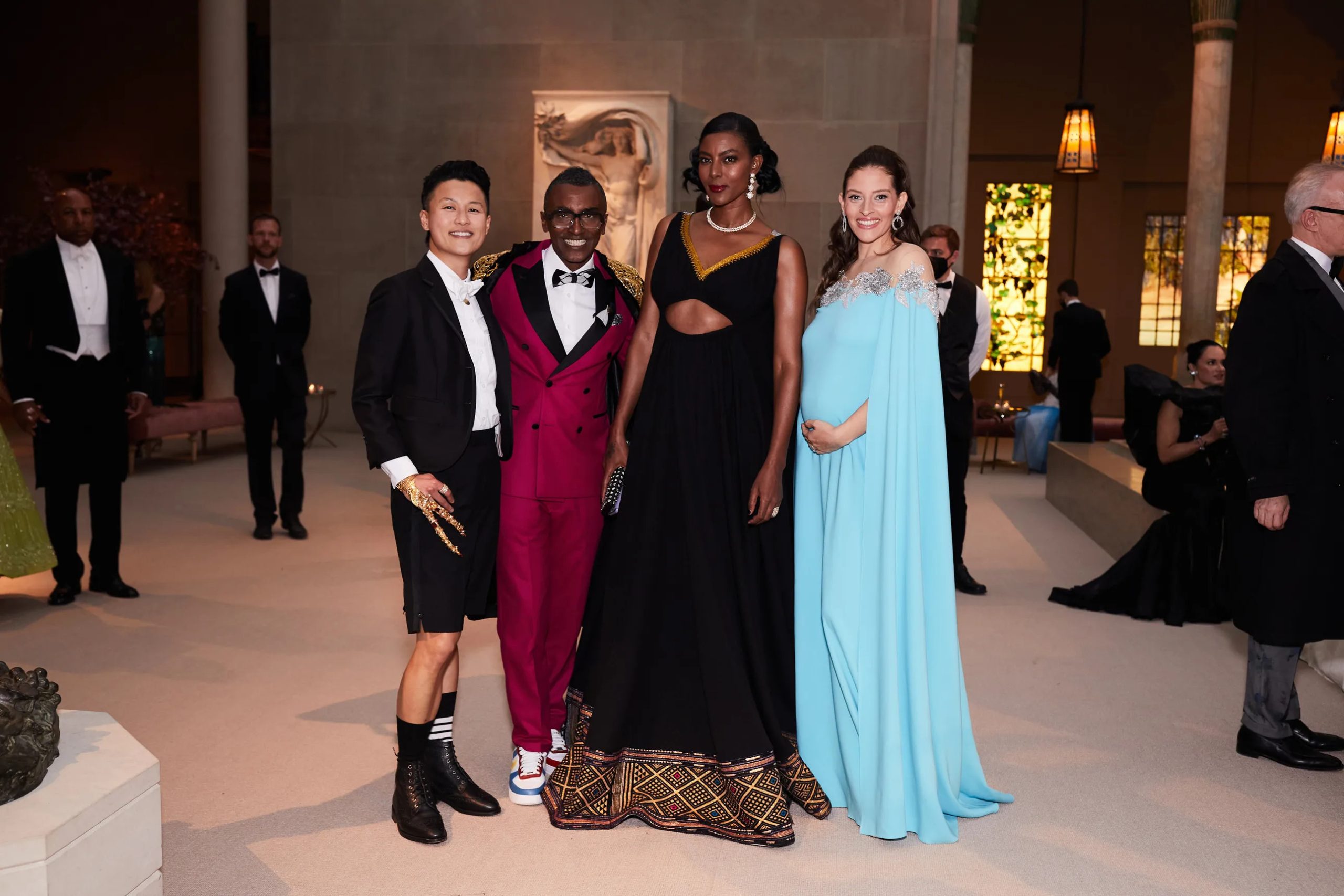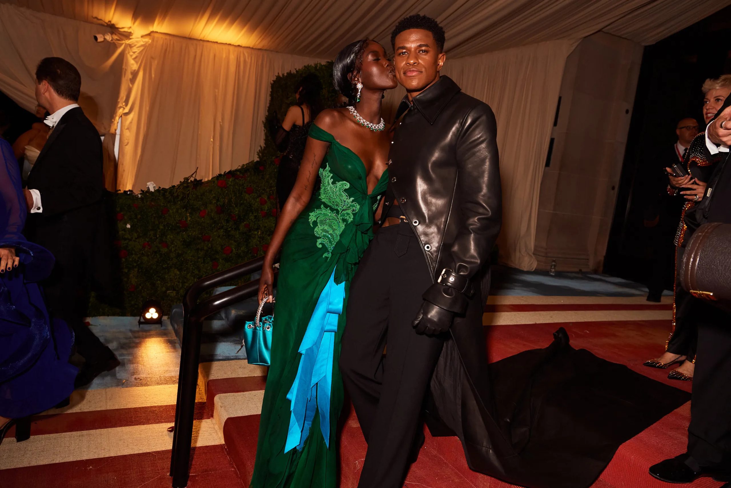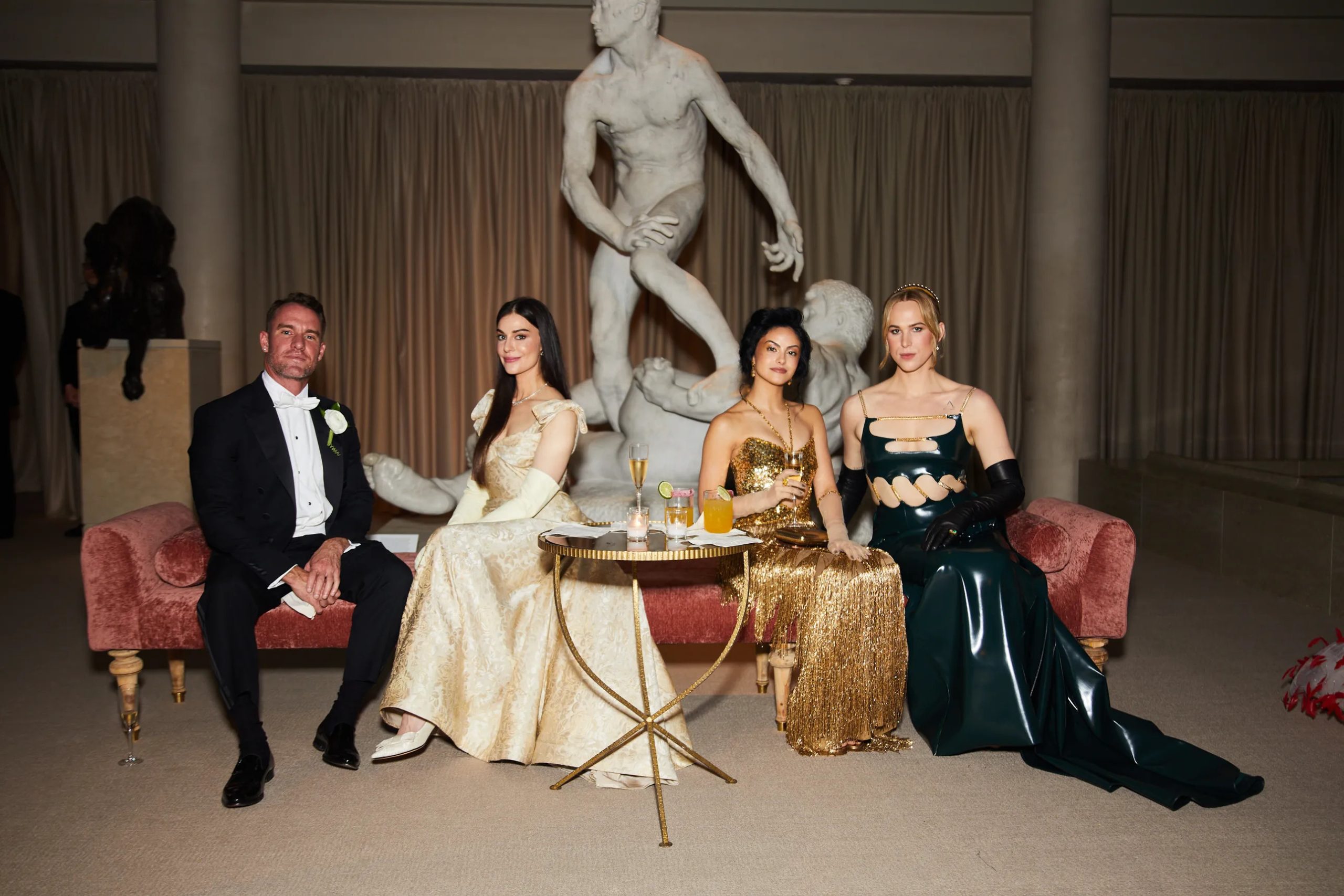 Zo poseert Kim Kardashian met Pete Davidson in de iconische “Happy Birthday Mr. President”-jurk van Marilyn Monroe en houdt Amy Schumer haar zonnebril op tijdens het cocktailuurtje in the Charles Engelhard Court in the American Wing. Gigi Hadid praat bij met vriendinnen Hailey Bieber en Naomi Campbell, Kendall Jenner sleept haar enorme Prada-trein mee en Alton Mason draait vol enthousiasme rondjes met zijn cape door de galerijen van het museum.