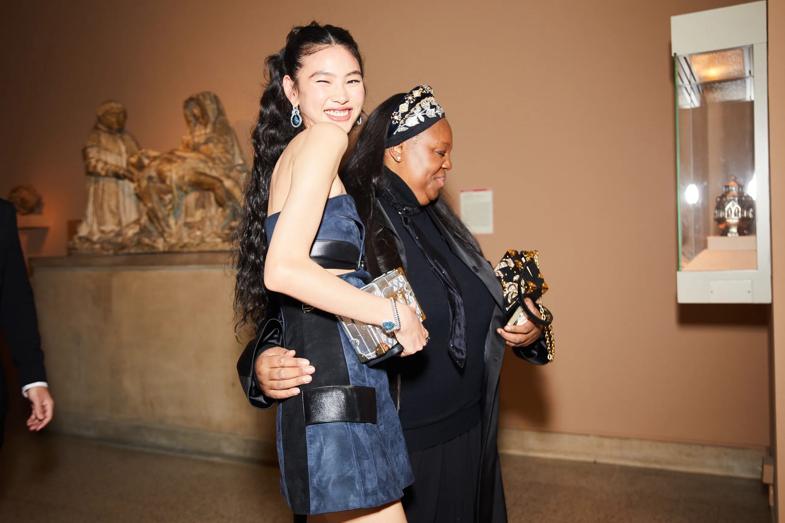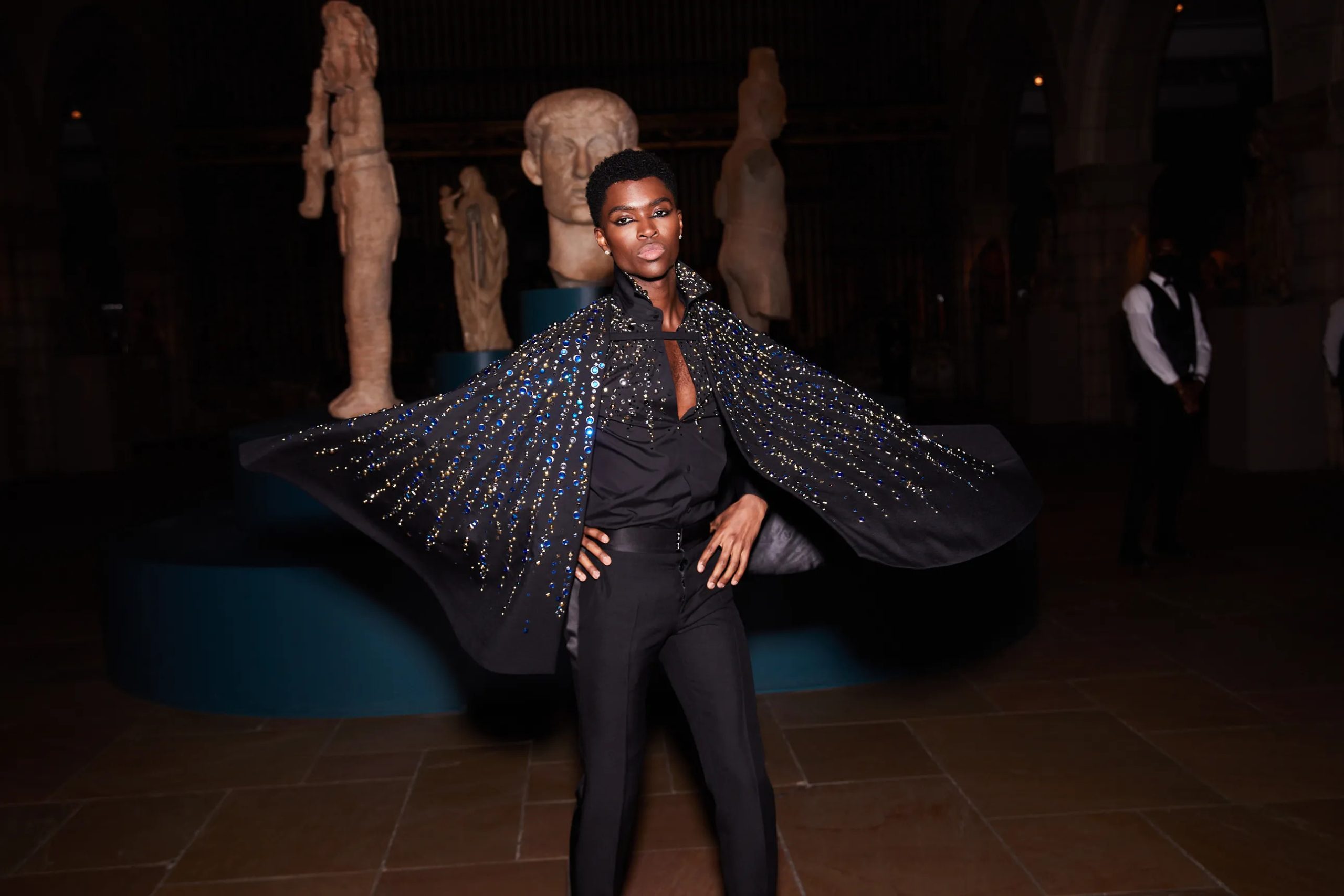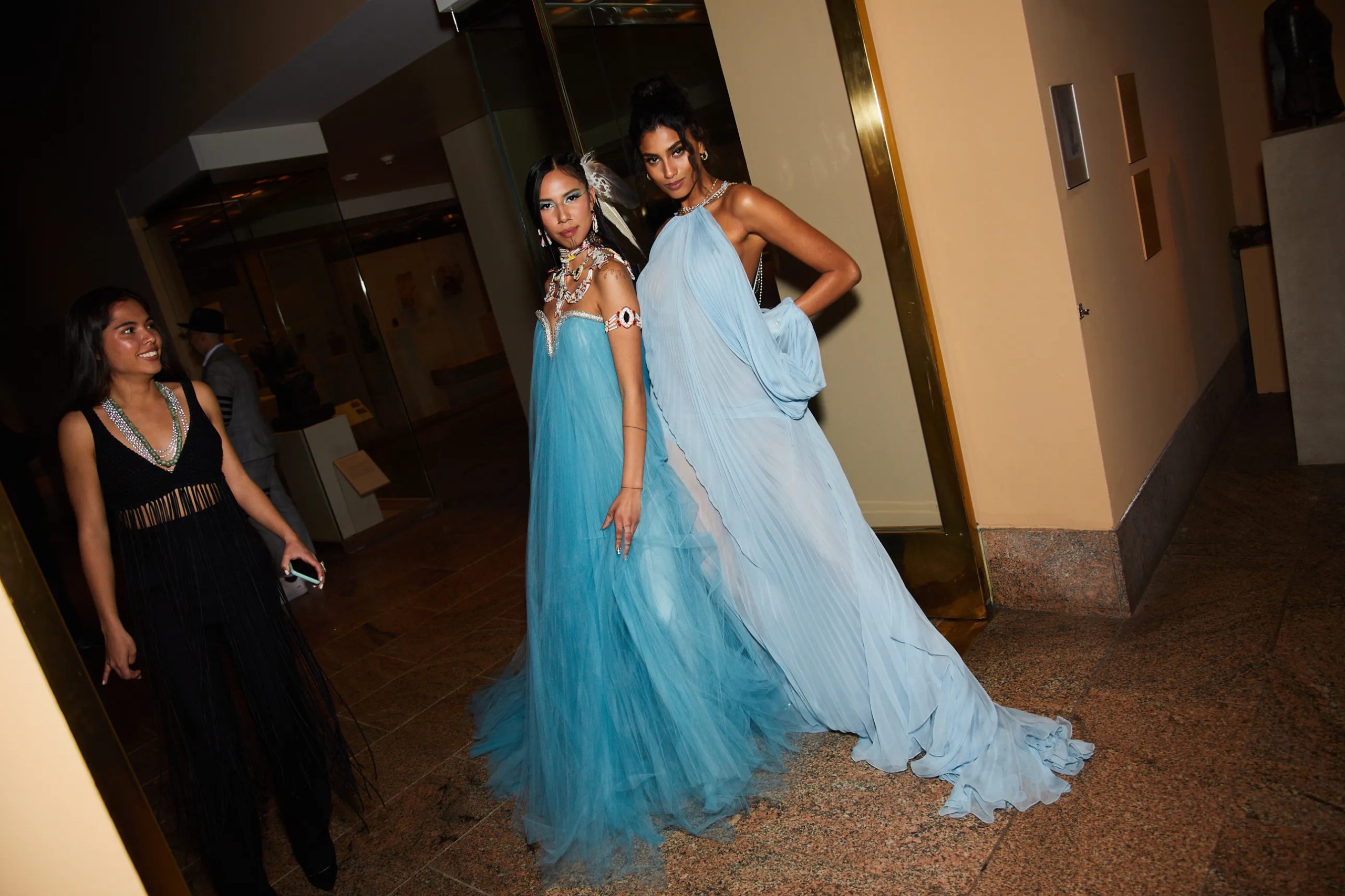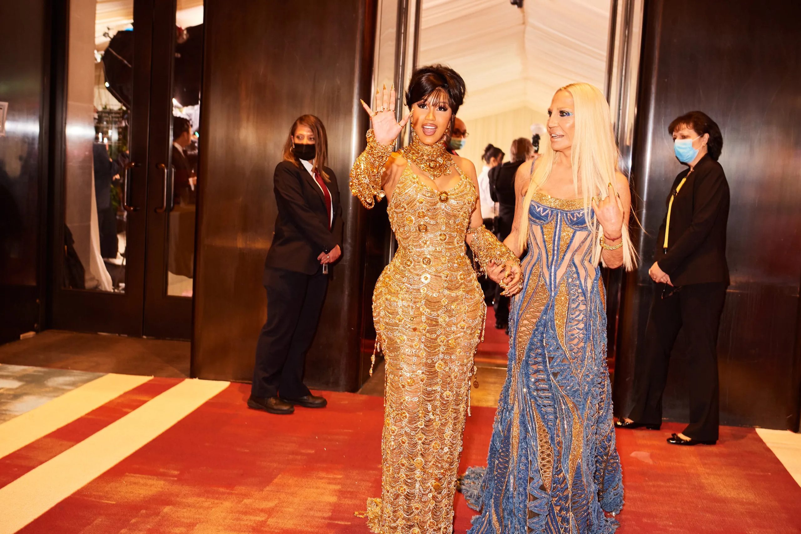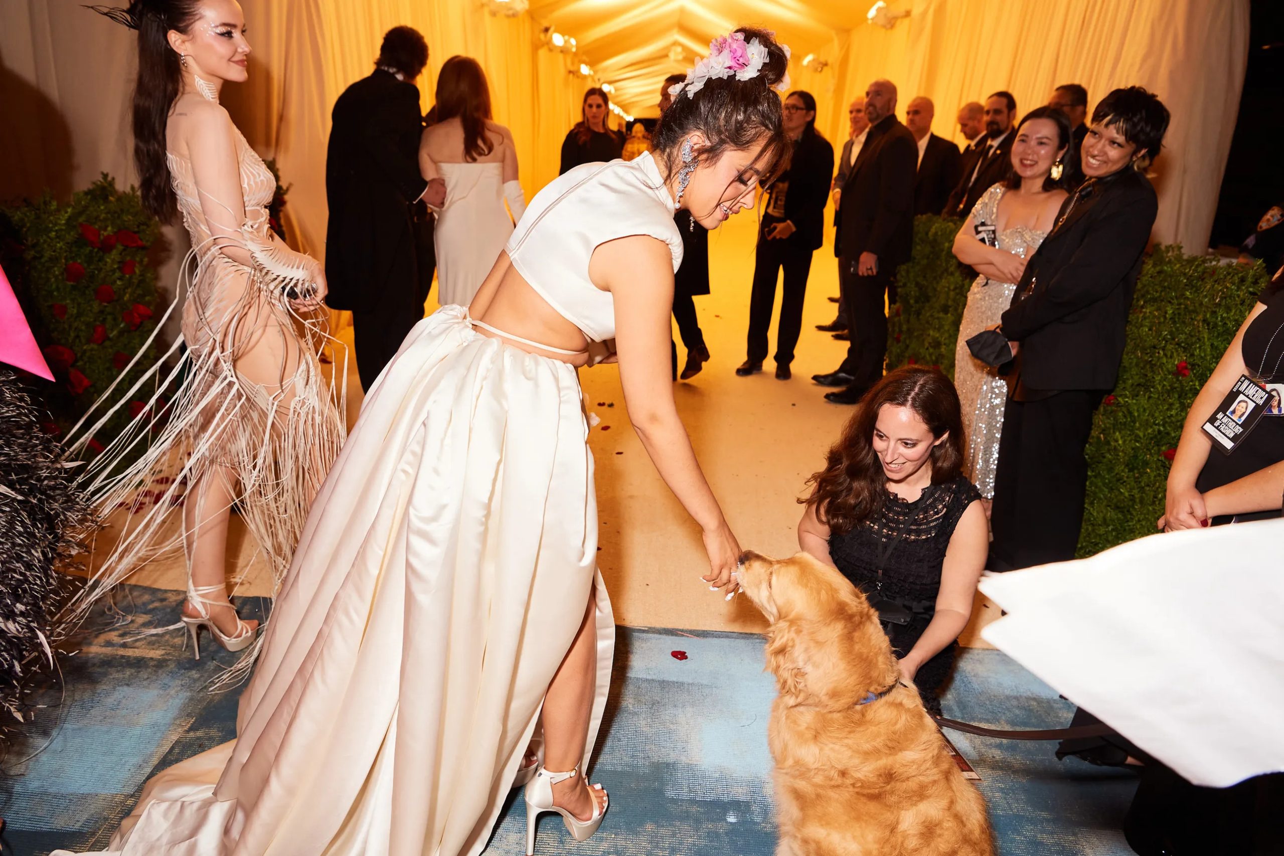 Zo poseert Kim Kardashian met Pete Davidson in de iconische “Happy Birthday Mr. President”-jurk van Marilyn Monroe en houdt Amy Schumer haar zonnebril op tijdens het cocktailuurtje in the Charles Engelhard Court in the American Wing. Gigi Hadid praat bij met vriendinnen Hailey Bieber en Naomi Campbell, Kendall Jenner sleept haar enorme Prada-trein mee en Alton Mason draait vol enthousiasme rondjes met zijn cape door de galerijen van het museum.