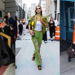 Het supermodel en kersverse Yellowstone-ster werd gespot toen ze het Bowery Hotel in New York verliet met een dieprood ovaal montuur. Hadid combineerde haar studieuze bril met een suède trenchcoat met een dubbele rijen knopen over een gestreepte gebreide coltrui en een bijpassende wijd uitlopende suède broek. Ze maakte haar look af met geometrische pareloorbellen en een paar pumps met een puntneus.