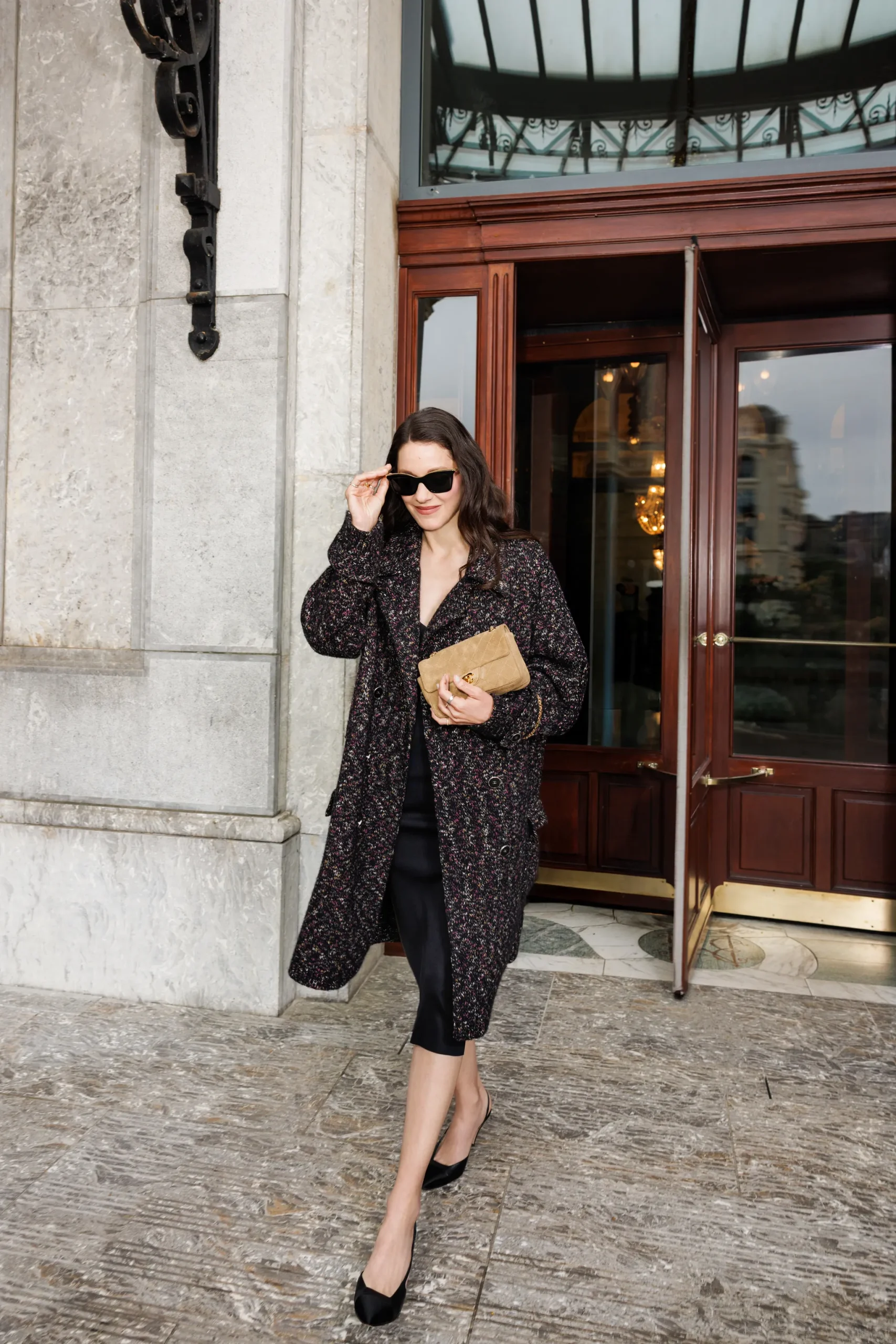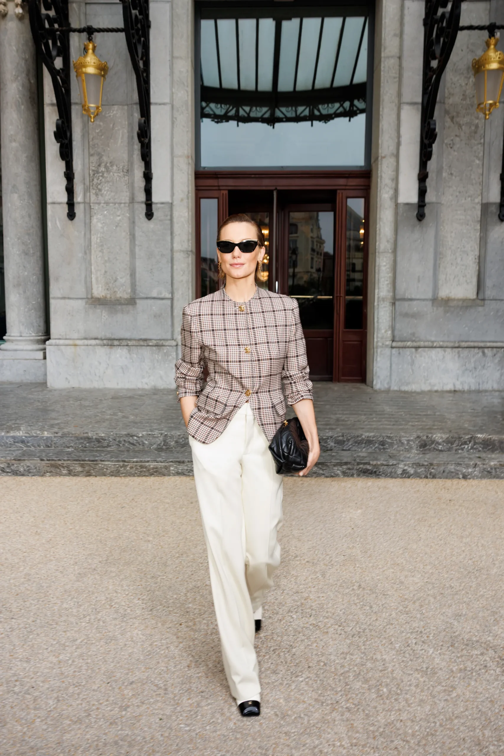 “Biarritz heeft mijn look geïnspireerd! Ik wilde dat het er gemakkelijk en moeiteloos uitzag. Ik twijfelde tussen deze outfit en een prachtige tweedelige set, bestaande uit een jasje en een rok in jacquard. Hoe ongelooflijk die ook was, ik wist dat ik een subtielere en rustigere, bijna strandachtige benadering van kleding voor ogen had. Nonchalant maar toch stijlvol. Ik denk dat ik het perfect heb gedaan, al zeg ik het zelf.”