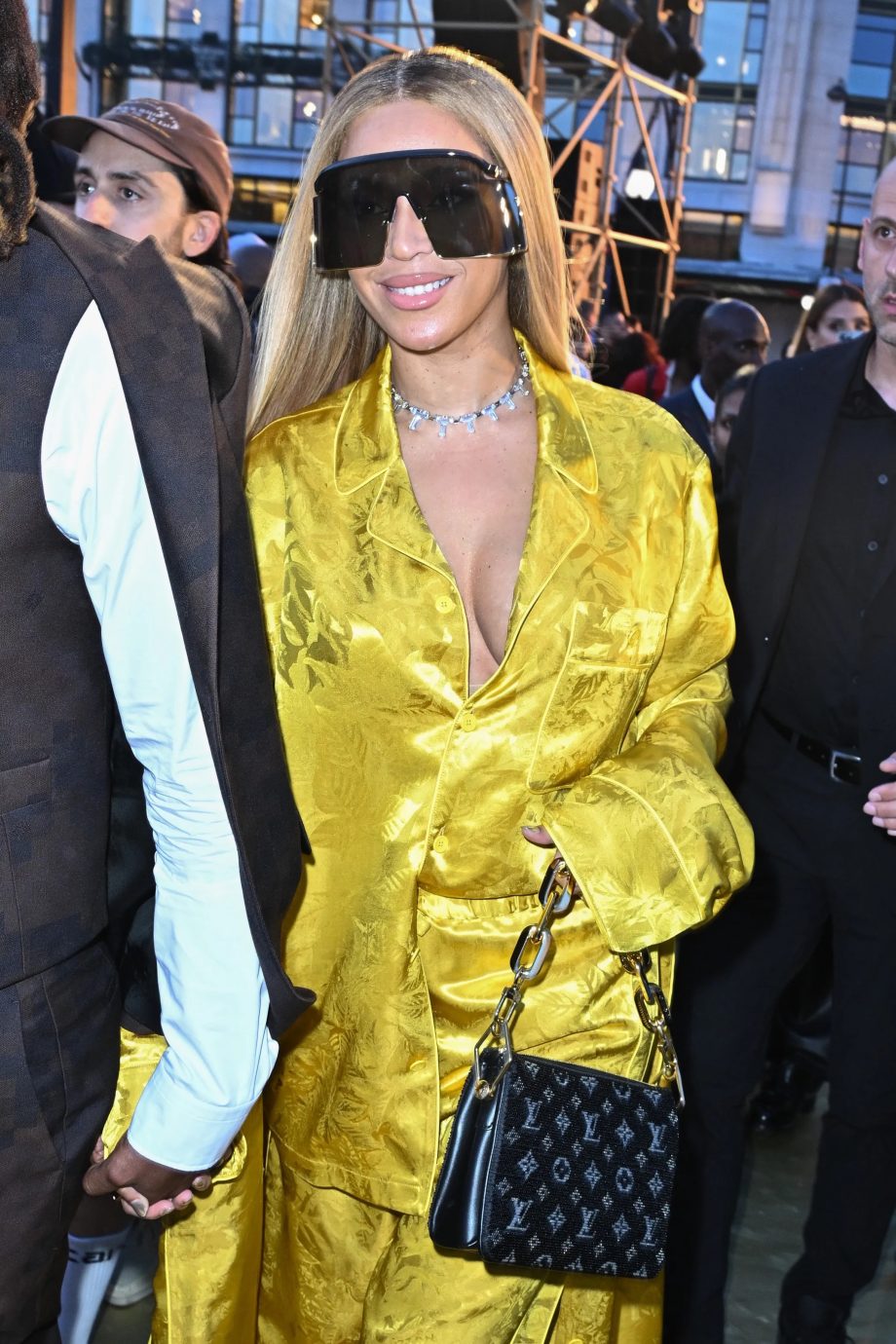 Beyoncés bruiloftsgastlook kwam uit de lente/zomer 2023-collectie van Dolce & Gabbana, die werd samengesteld door Kim Kardashian. De realityster kamde de archieven van het Italiaanse modehuis tussen 1987 en 2007 uit, en ging vervolgens vooral voor lingeriesetjes, korsetten en getailleerde jurken. Op de catwalk waren de looks gestikt met labels op de heup of om de pols met daarop het jaar waarin de look voor het eerst te zien was. Beyoncés bewerkte archieflook komt uit de lente/zomer 1995-collectie, die vol zat met op lingerie geïnspireerde lijfjes en perzikkleurige nudes.