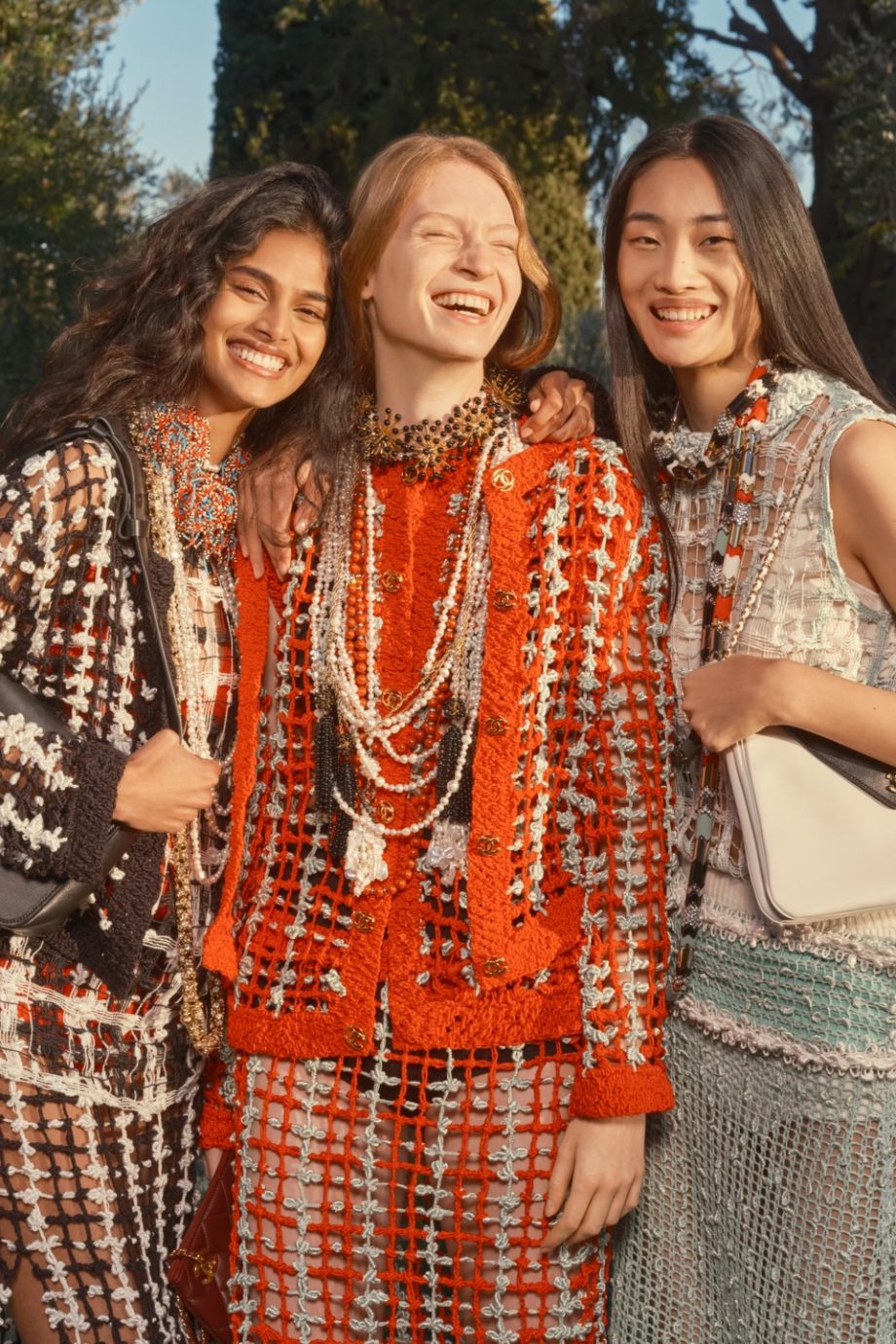 Terug naar de campagne. Fotograaf Alec Soth bracht de essentie van de collectie en de locatie perfect samen. Onder anderen Awar Odhiang, die de debuutshow afsloot en Bhavitha Mandava die de Métiers d’Art-show in New York opende, waren te zien in zijn shots. Samen met de andere modellen bewogen zij zich vrij tussen de muren van La Pausa, van (slaap)kamers tot de iconische trap waar Gabrielle Chanel zelf ooit werd gefotografeerd. Al met al geeft de campagne een warm, speels en vrolijk gevoel: het voelt als thuiskomen.
