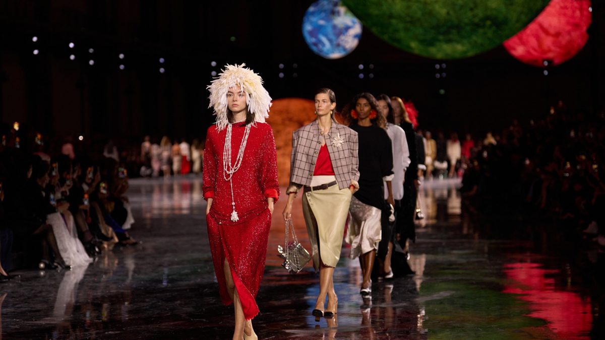 De debuutshow van Blazy vond plaats in het iconische Grand Palais, waar, met een pauze van een aantal jaar wegens een grote verbouwing, de nieuwe collecties van Chanel te bewonderen zijn. Het gebouw transformeerde voor de gelegenheid in een universum met gigantische, levensechte planeten. Het deed denken aan de spectaculaire showdecors uit de tijd van Karl Lagerfeld, die gerust een enorme raket of een echte reusachtige ijsschots liet plaatsen in de hal. Blazy liet hiermee zien dat er een nieuw tijdperk voor Chanel is aangebroken, een nieuw universum zonder grenzen. “Chanel is liefde. De geboorte van de moderniteit in de mode is de vrucht van een liefdesverhaal”, lezen we in zijn shownotes. “Dat vind ik het mooiste. Voorbij tijd en ruimte, een idee van vrijheid. De vrijheid die Gabrielle Chanel draagt en overwint.”