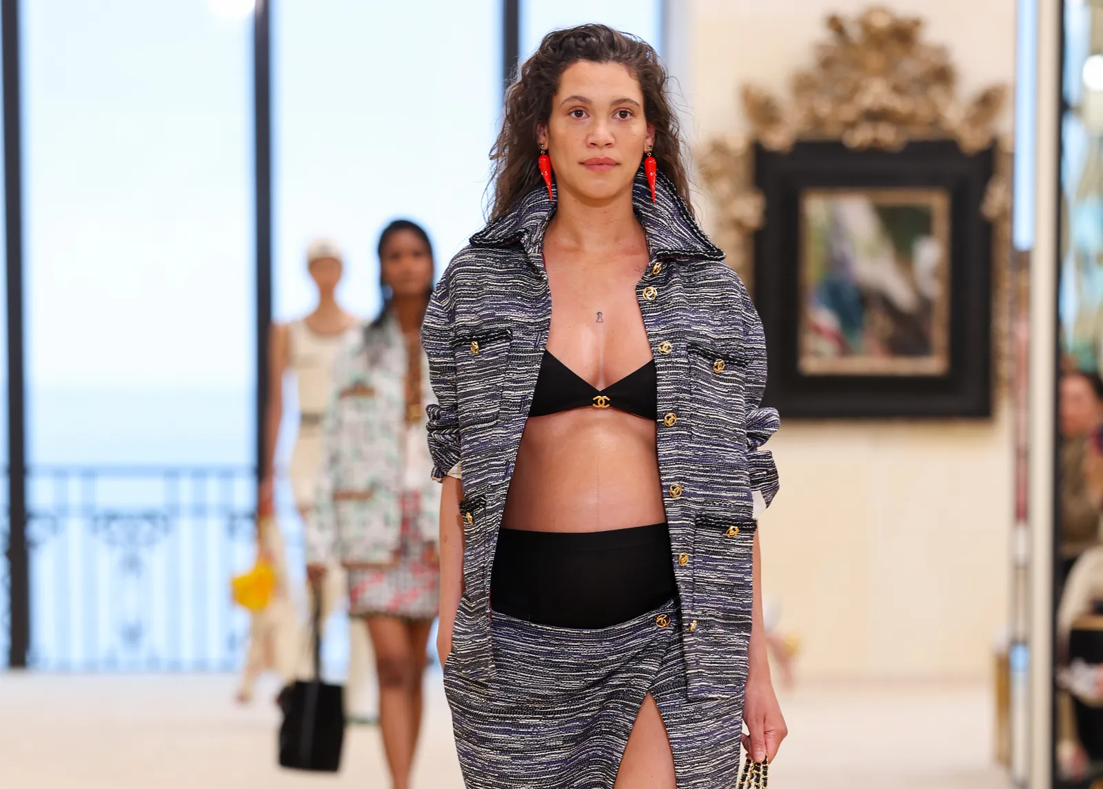 De Cruise 2027-show vond plaats in Biarritz, de bakermat van de art deco, waar Gabrielle ‘Coco’ Chanel samenkwam met haar kring van kunstenaars, van Igor Stravinsky tot Jean Cocteau en Pablo Picasso. Daar bevrijdde de modeontwerper zich van de beperkingen van de etiquette. Na een veelbesproken debuut als hoedenmaker in Parijs, een eerste boetiek in Deauville in 1912 en vervolgens een andere in Monte Carlo in 1914, richtte ze daar het jaar daarop haar modehuis op. Aan de kust zette ze haar zoektocht naar vrijere mode voort, die de bewegingsvrijheid niet belemmerde.