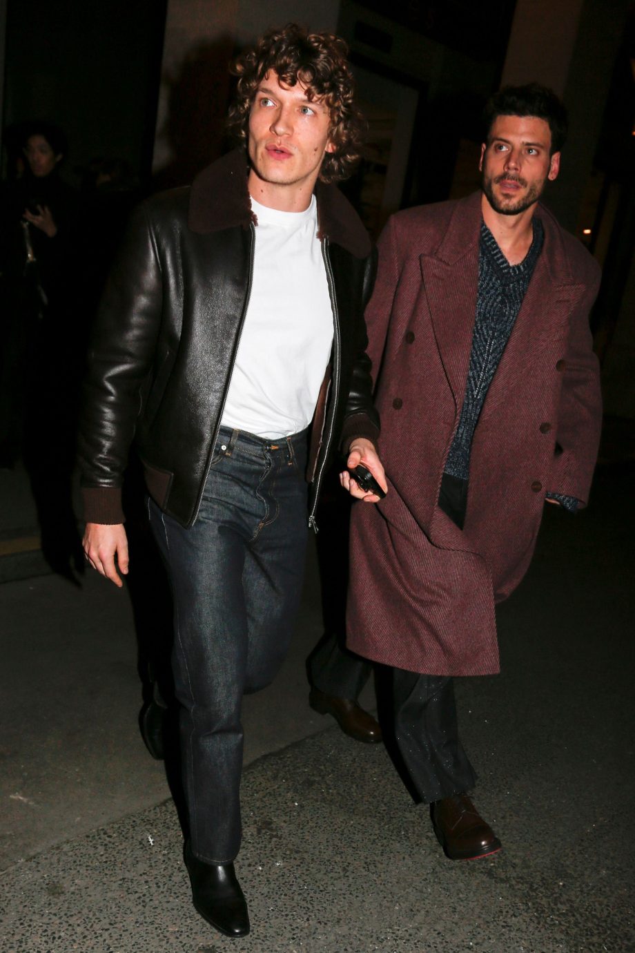 De twee co-sterren, van wie onduidelijk is of ze aan het daten zijn of gewoon goede vrienden zijn, werden diezelfde avond ook samen gespot bij het verlaten van Hotel Costes. Arnaud droeg een double-breasted wollen jas over een grove V-halstrui, gecombineerd met een wijde pantalon en veterlaarzen. Storrie channelde zijn innerlijke James Dean in een leren aviatorjack, een wit T-shirt, high-waisted jeans en enkellaarsjes.