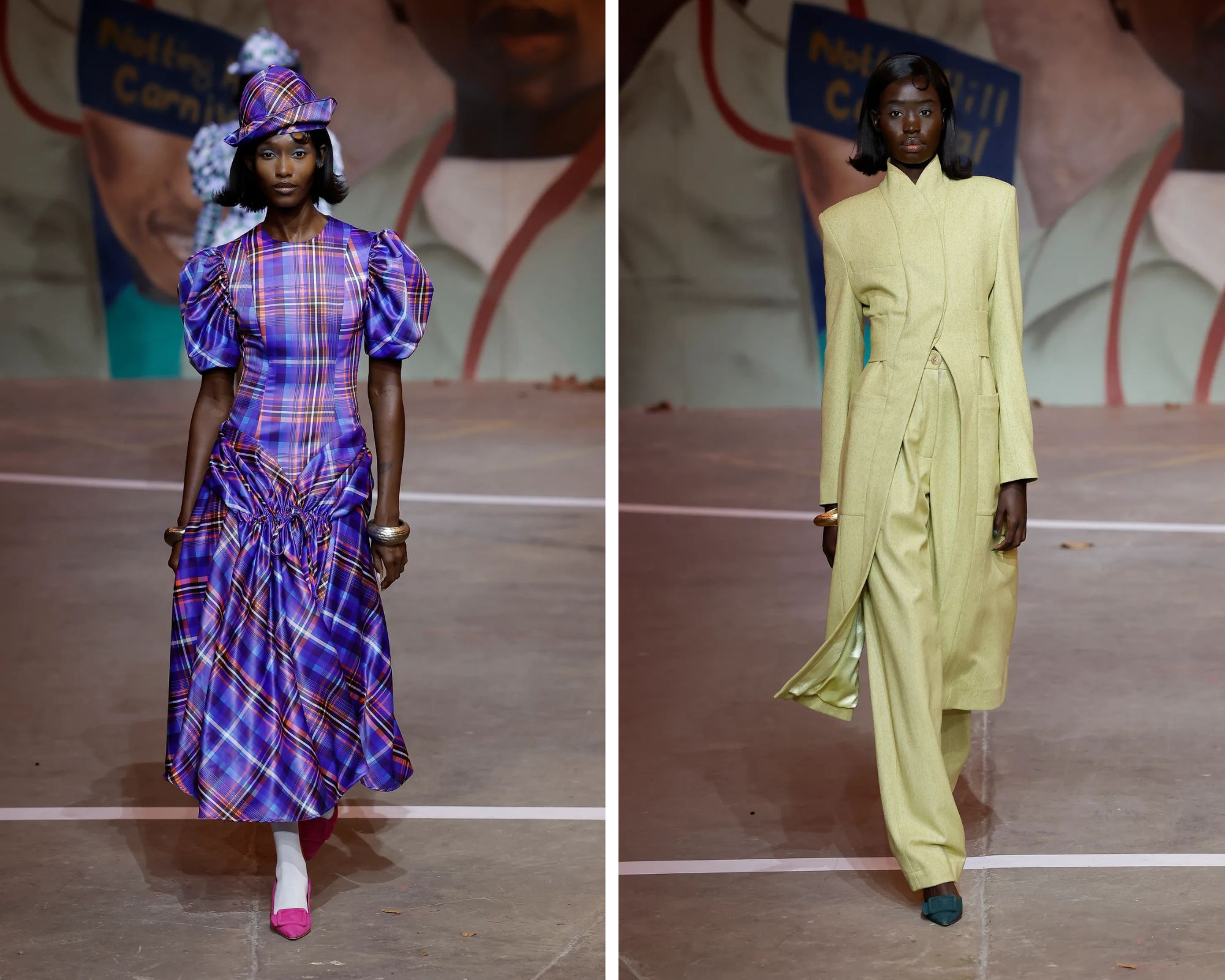Het is dan ook wel passend dat koning Charles op de eerste rij zat tijdens de show van Coker – ondanks dat de ontwerper niet wist dat de vorst aanwezig zou zijn toen ze de collectie ontwierp. “Het is ironisch, het voelt een beetje als een goddelijke samenloop van omstandigheden”, zegt ze. “Ik vind het heel mooi en krachtig dat we de koning van Engeland naar onze wijk hebben kunnen uitnodigen, snap je? Het is een krachtig statement: dit is Londen in al zijn kleur, schoonheid en glorie. Dat is wat ik wilde bereiken: belangrijke gesprekken voeren via kleding. Ik wil de plek waar ik vandaan kom niet steriliseren.”