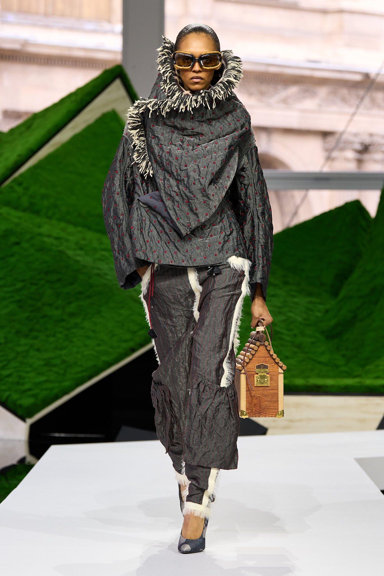 De modellen leken hierdoor een groep high-fashion schaapherders, die zich een weg baanden door het sculpturale landschap dat Hindle creëerde voor de show. Een van de tassen kwam zelfs in de vorm van een vogelhuisje, om het natuurgevoel compleet te maken. Naast deze ‘herder-looks’ verschenen er ook ontwerpen met geometrische vormen op de catwalk, evenals hernieuwde digitale kunstwerken in een artistieke samenwerking met kunstenaar Nazar Strelyaev-Nazarko.