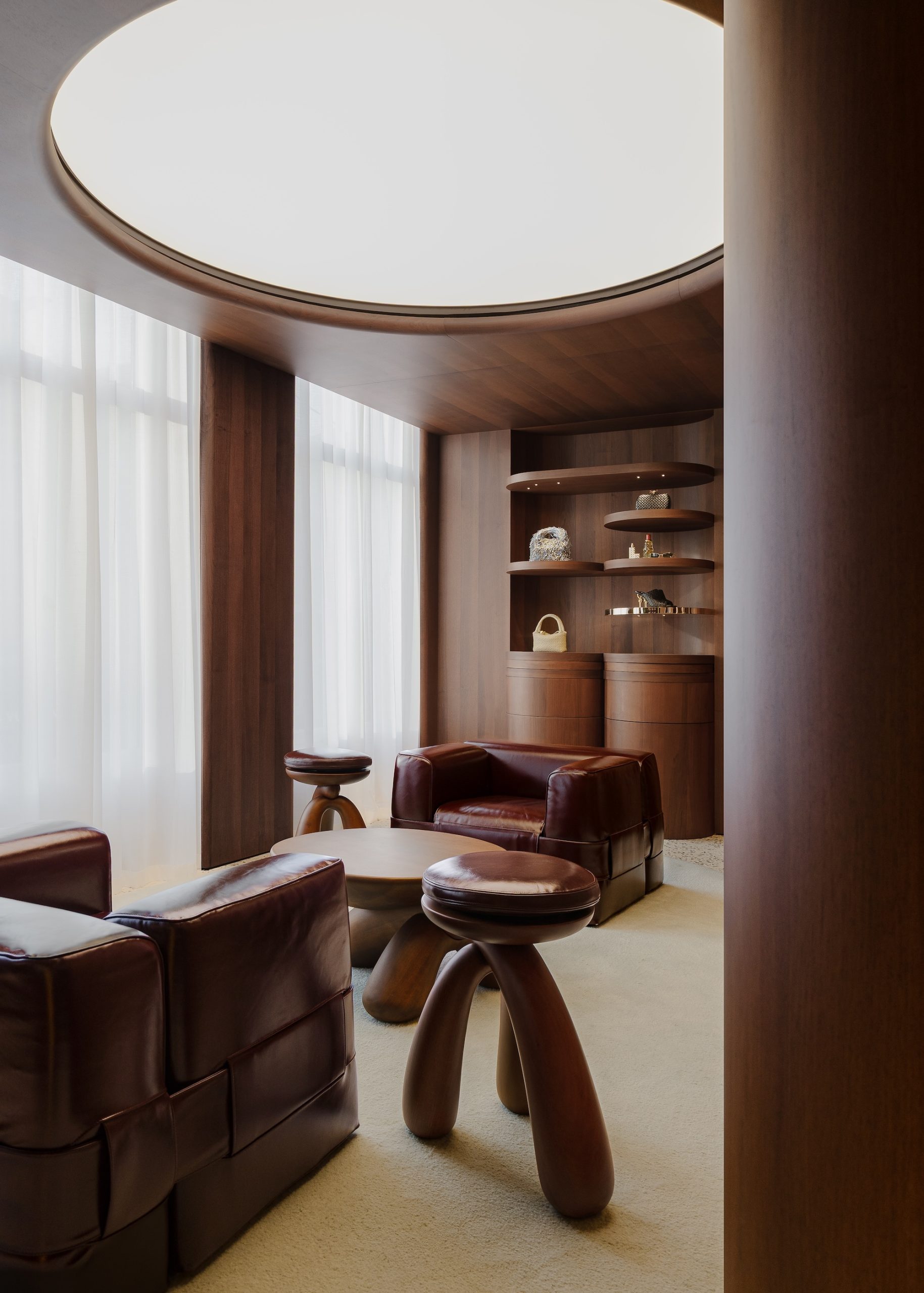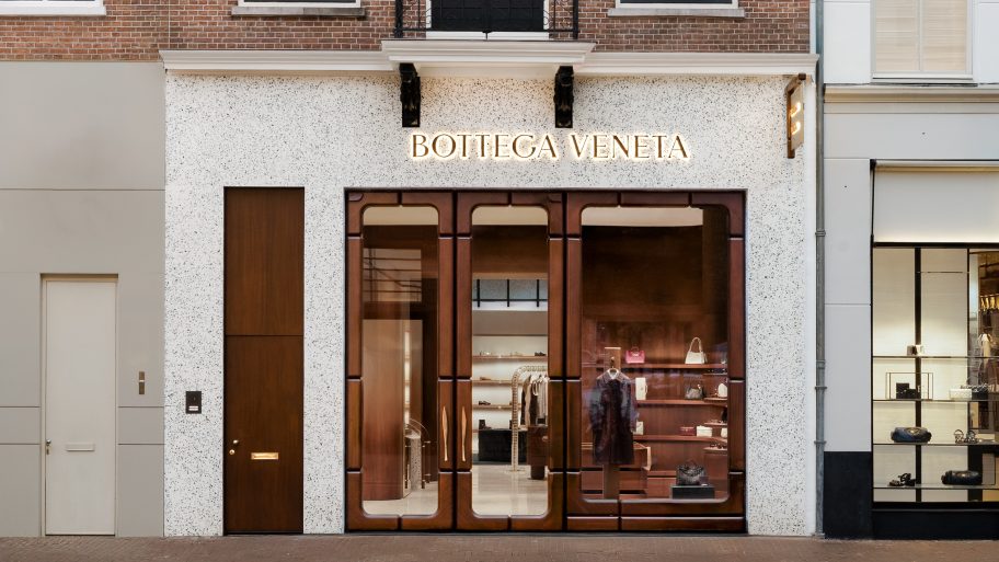 Bottega Veneta is verhuisd naar een grotere boetiek op de P.C. Hooftstraat, met een compleet gerenoveerde ruimte die naadloos aansluit bij het modehuis. Denk aan gebogen wanden van Italiaans notenhout, gouden details die doen denken aan het handvat van de Sardine-tas, stoelen van Intrecciato-leer en een afwerking met terrazzo, een traditionele Italiaanse tegeltechniek die vaak wordt gebruikt in Venetiaanse huizen en paleizen. En dat verdeeld over drie verdiepingen.