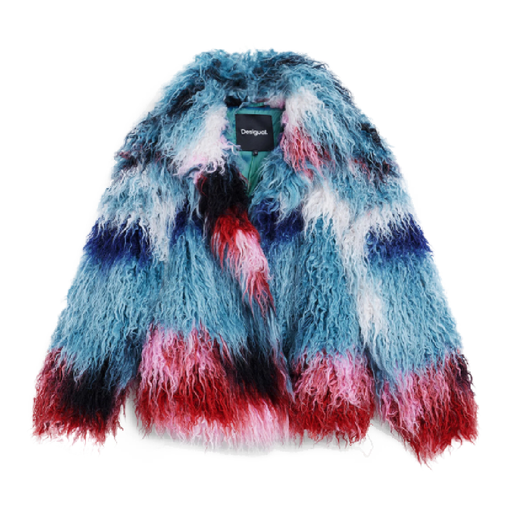 Om haar look af te maken, koos Miller voor een wijde witte jeans, een zonnebril met tortoise montuur en een paar zwarte ballerina’s. Haar chique en makkelijk te kopiëren silhouet draait om één sterk kledingstuk: het jasje. Momenteel is het stuk voor een zachte prijs verkrijgbaar op de website van Desigual. Een must voor het koude seizoen om net dat beetje extra kleur toe te voegen aan je wintergarderobe. Je shopt het furry ontwerp hieronder.