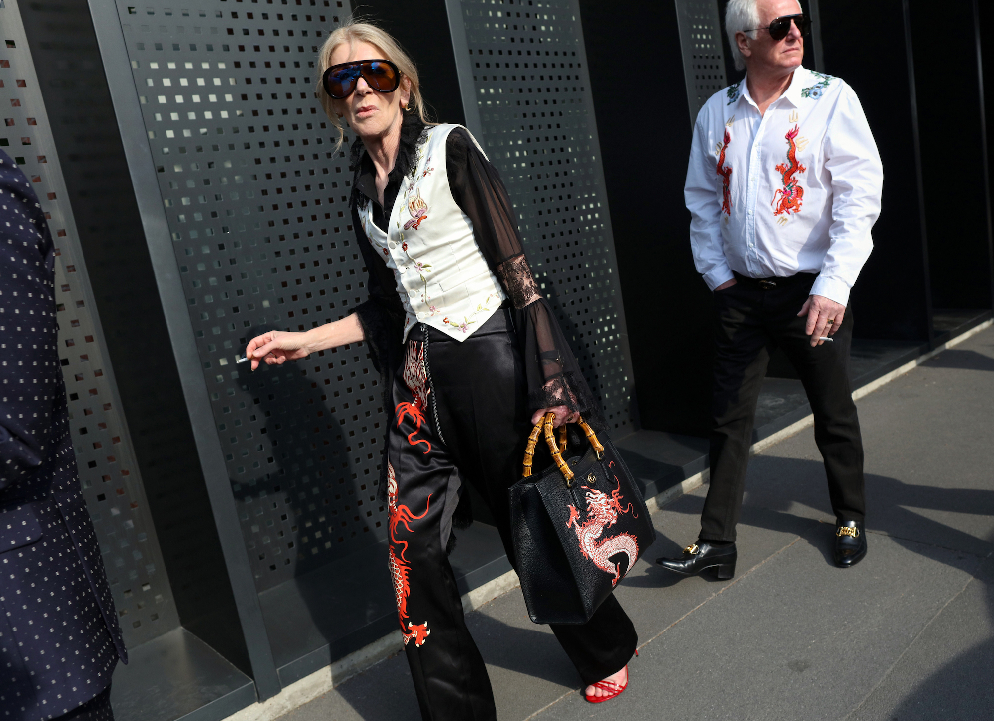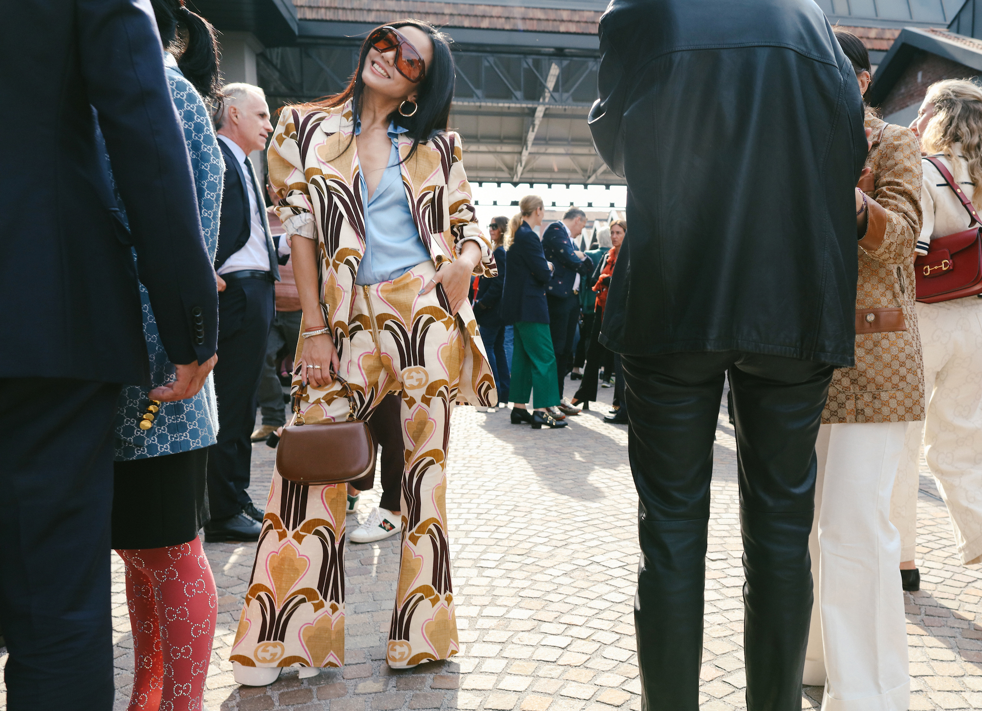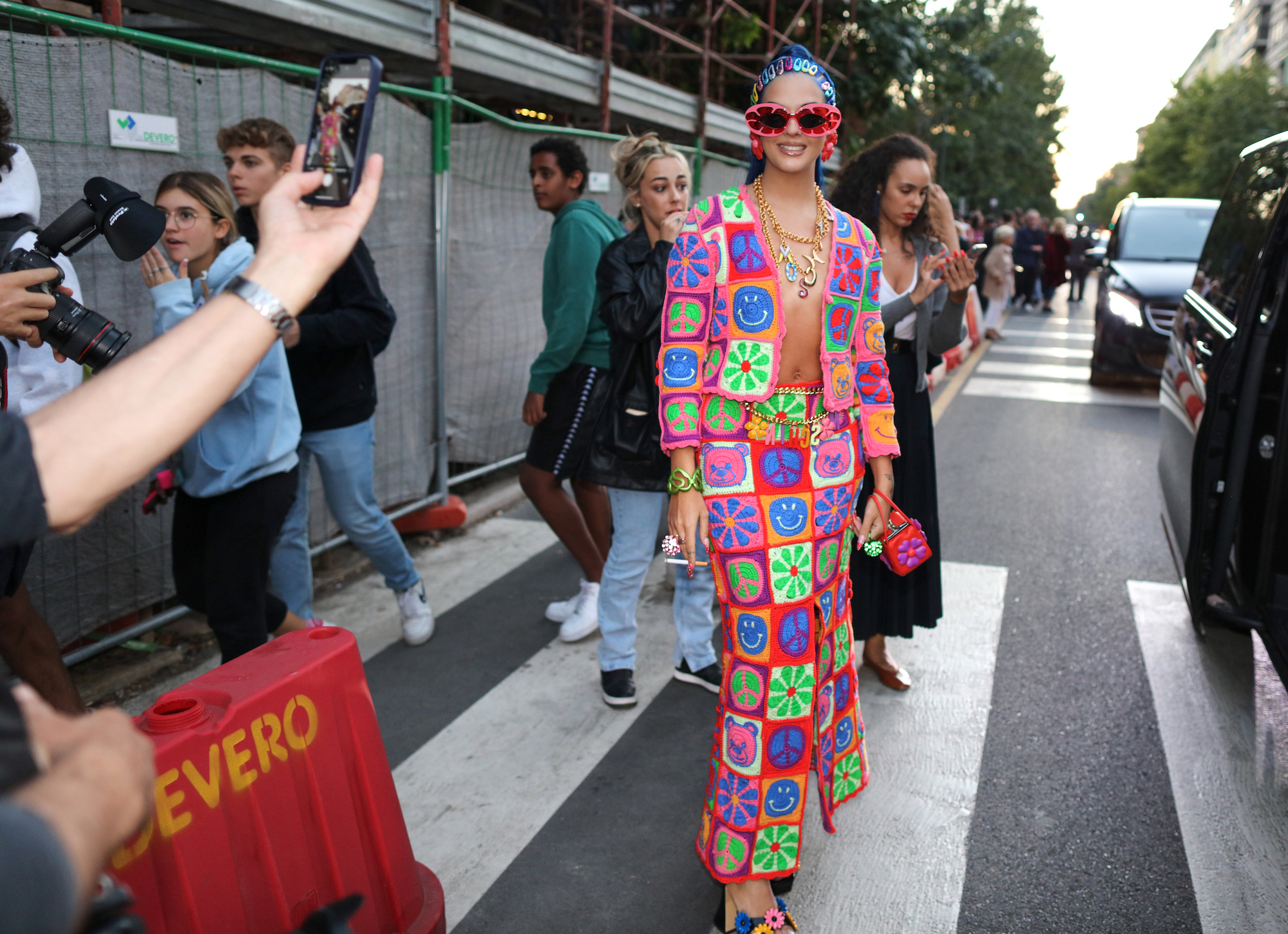 Als we ergens altijd vrolijk van worden, dan zijn het wel de streetstylebeelden van Milan Fashion Week. Met modehuizen als Gucci, Versace en Moschino die hun nieuwste collecties presenteren, is het straatbeeld heerlijk flamboyant en uitgesproken. Dat in combinatie met de zon – die vrijwel altijd schijnt in de Italiaanse stad – levert opgewekte plaatjes op. We zagen mesh en franjes, prints op prints, seventies-pakken en leer. En natuurlijk mochten de grootste seizoensfavorieten niet ontbreken, zoals de Gucci x Adidas-collectie en de combinatie van Prada’s tanktop en doorschijnende rok.
