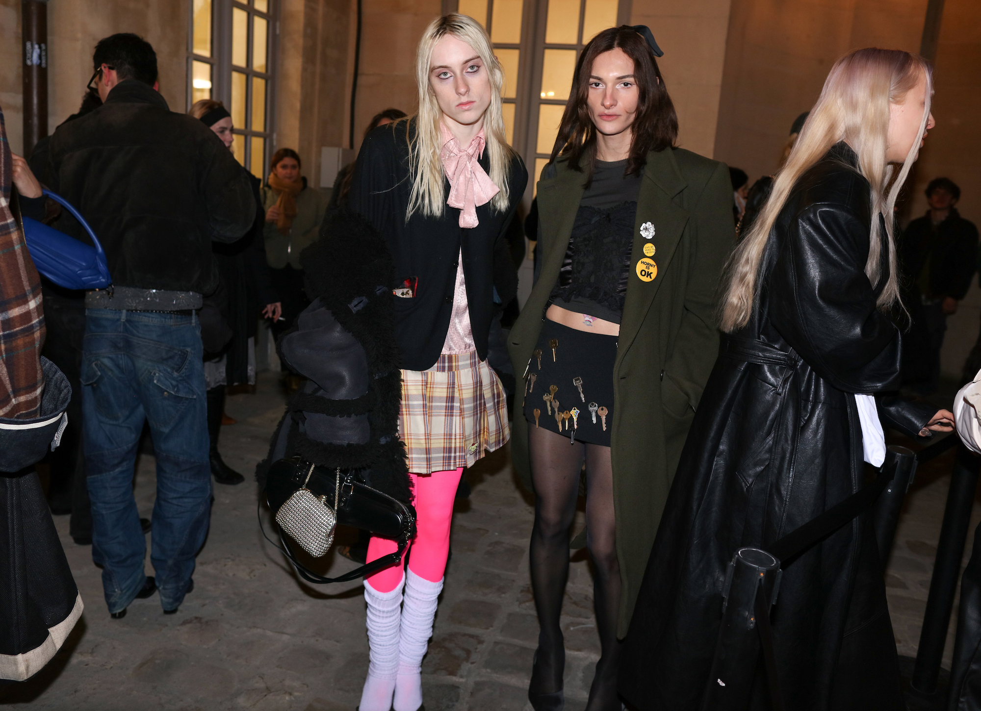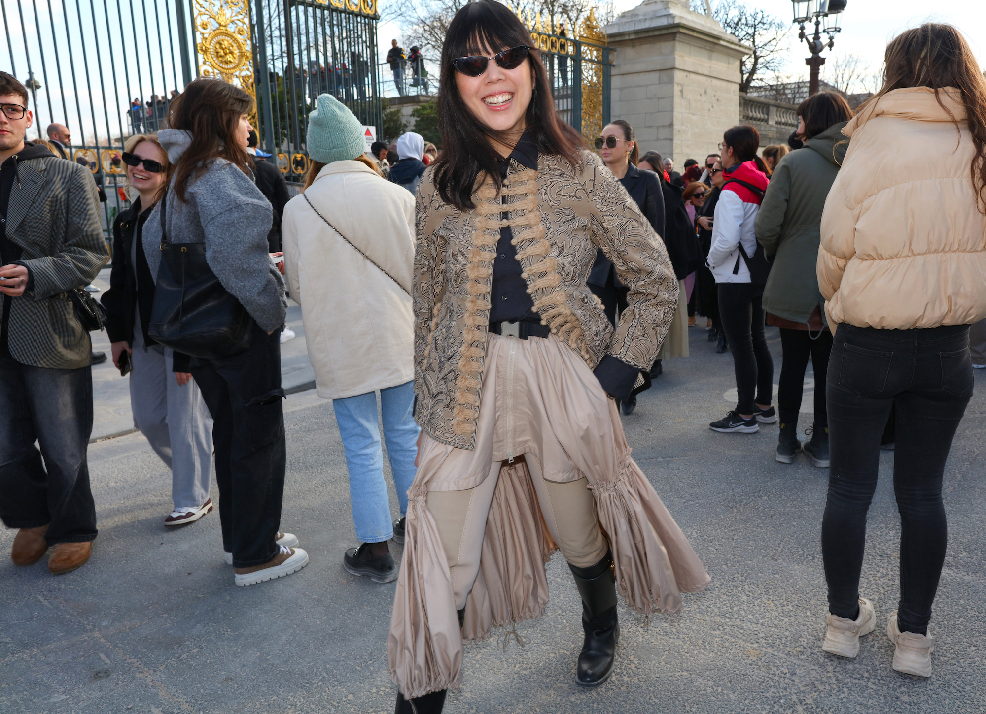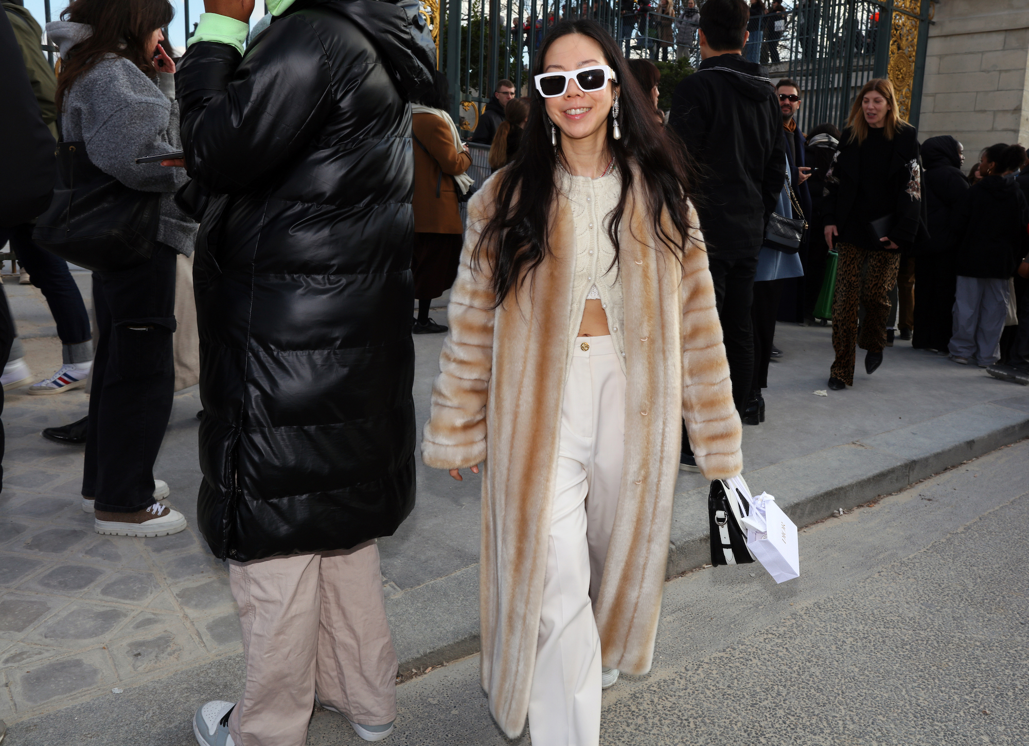 Hoewel de zon de straten van Parijs opwarmde, was het nog behoorlijk koud in de Franse hoofdstad. Dat mag niet baten voor de aanwezige fashion crowd. Zo waren er ontblote schouders, benen en buiken in overvloed – wel met een warme winterjas binnen handbereik. Zowel op de catwalk als in de straten werd duidelijk: broeken maken dit seizoen massaal plaats voor rokken. Gelukkig geen microrok te bekennen; het waren de maxi’s en midi’s die de show stalen.