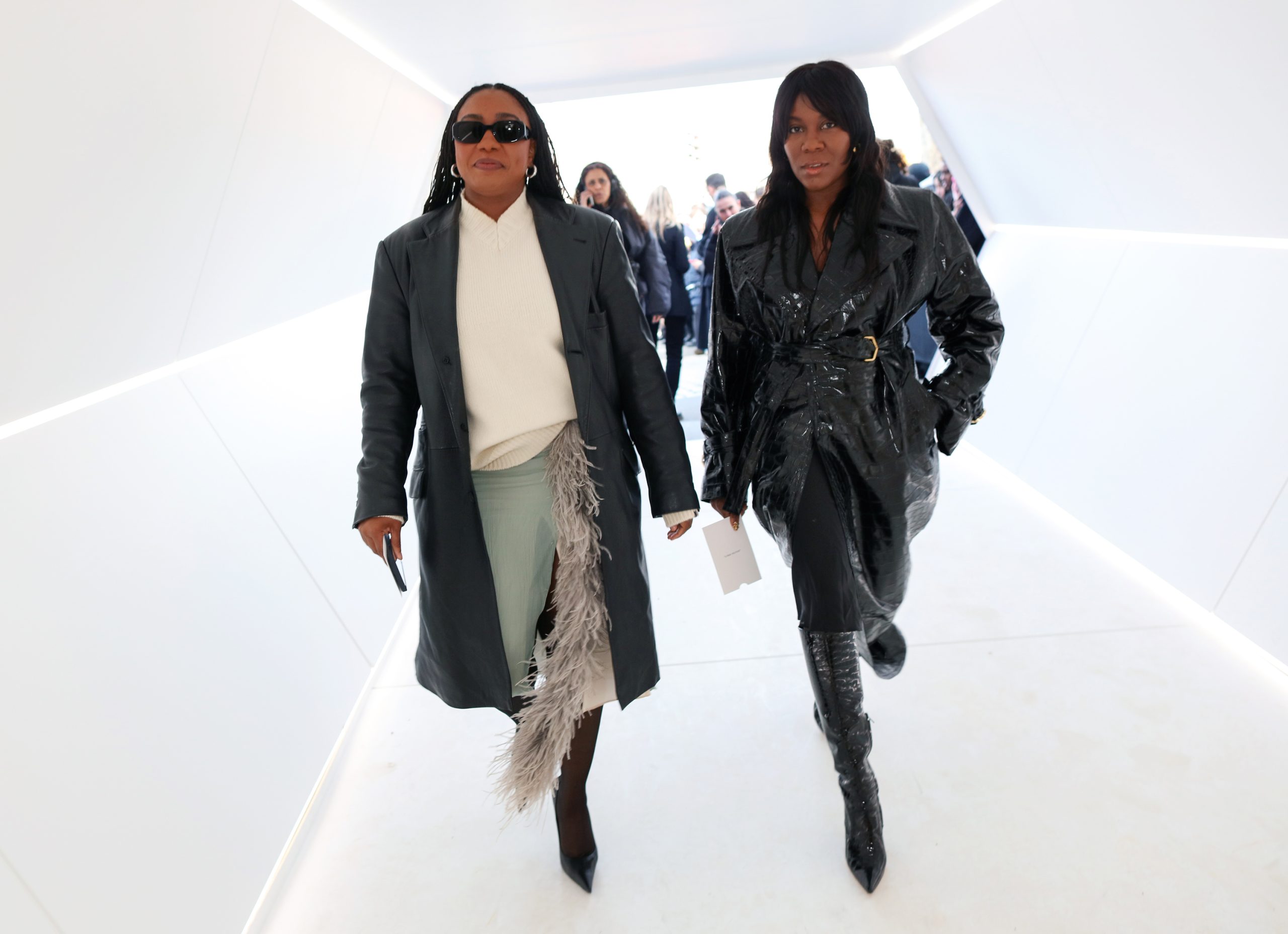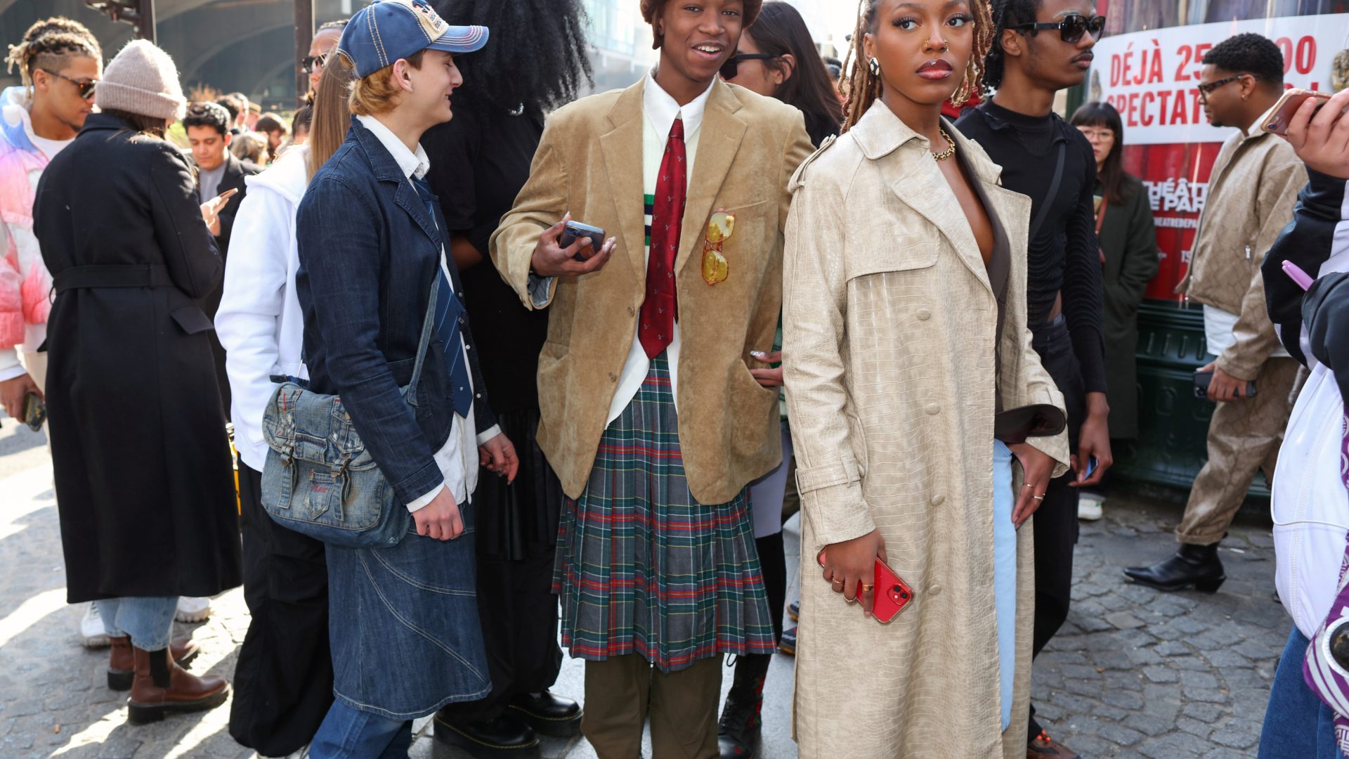 Hoewel de zon de straten van Parijs opwarmde, was het nog behoorlijk koud in de Franse hoofdstad. Dat mag niet baten voor de aanwezige fashion crowd. Zo waren er ontblote schouders, benen en buiken in overvloed – wel met een warme winterjas binnen handbereik. Zowel op de catwalk als in de straten werd duidelijk: broeken maken dit seizoen massaal plaats voor rokken. Gelukkig geen microrok te bekennen; het waren de maxi’s en midi’s die de show stalen.
