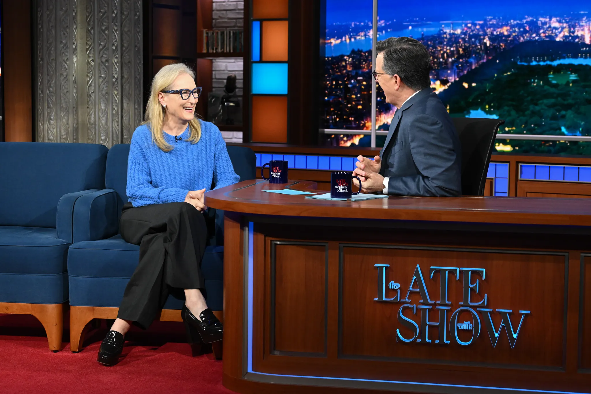 Tijdens de allereerste stop van de persreis in Mexico-Stad verscheen Meryl Streep in een rood pak van Dolce & Gabbana, terwijl Anne Hathaway koos voor een Schiaparelli-jurk met franjes en een sculpturale gouden riem. Voor een optreden laat op de avond in The Stephen Colbert Show droeg Streep een custom cerulean blue trui van J.Crew. (Ja, niet turkoois of lapis, maar cerulean.)