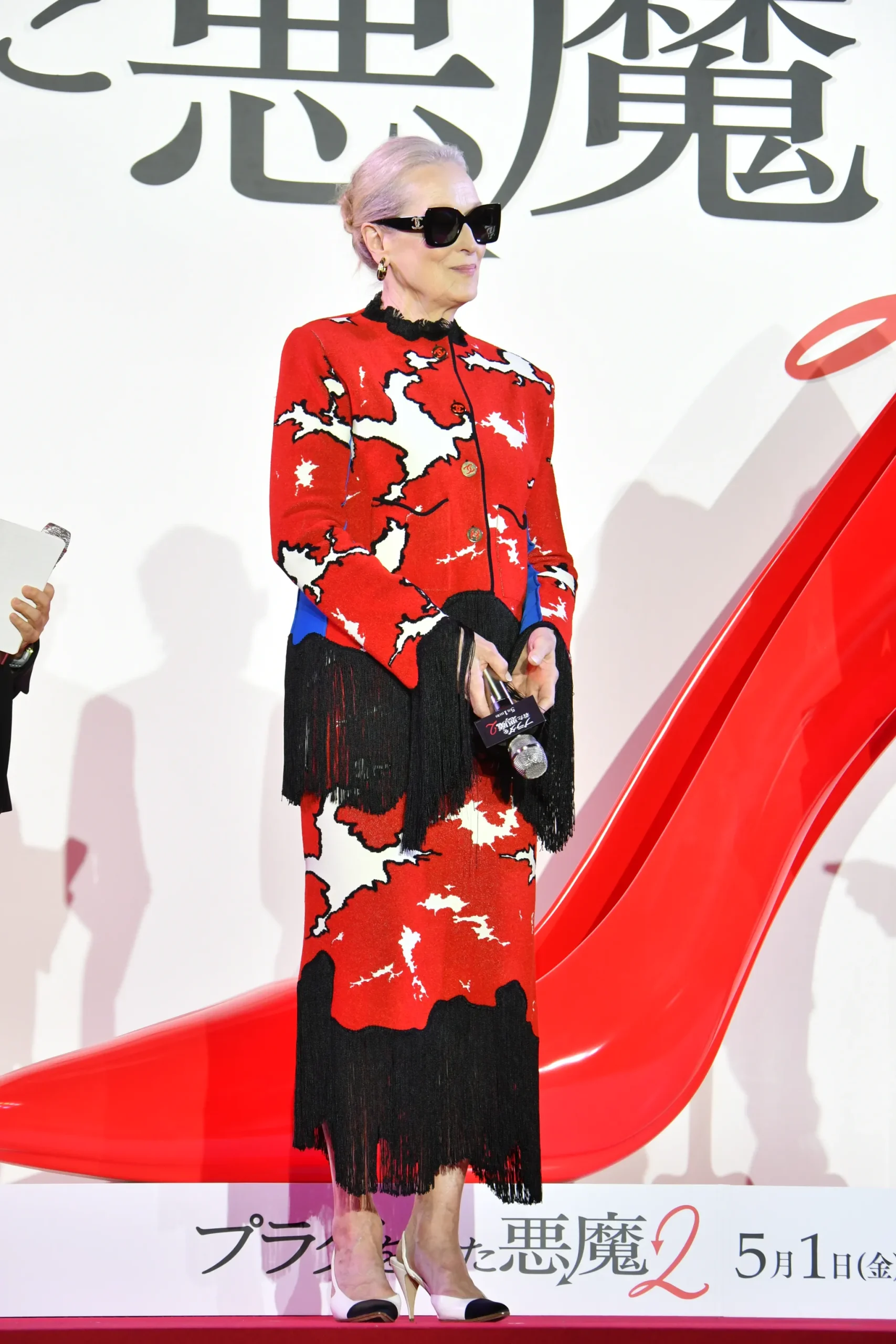 In Tokio zagen we meer opvallende looks tijdens de première van The Devil Wears Prada 2. Streep verscheen in een nieuw Chanel-ontwerp uit het Matthieu Blazy-tijdperk, terwijl Anne Hathaway koos voor een creatie van Valentino, uit de lente/zomer 2026-couturecollectie van het modehuis.