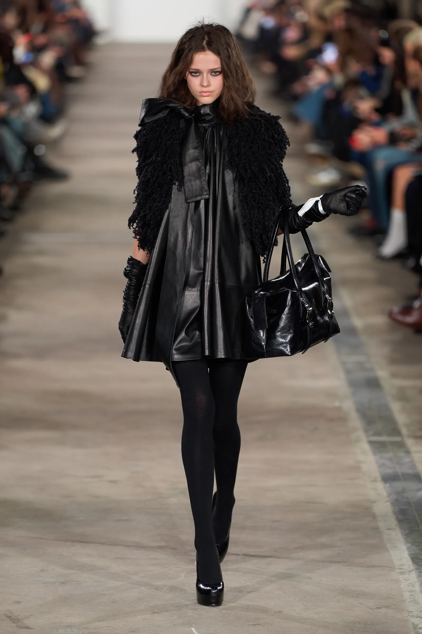 Terwijl sommigen van ons gefascineerd keken naar de aankomsten bij de Brit Awards 2026, werd er in het Palazzo San Fedele in Milaan een misschien nog wel indrukwekkender (lees: absoluut indrukwekkender) rode loper uitgerold voor Louise Trotters herfst/winter 2026-show voor Bottega Veneta. Julianne Moore, Pa Salieu, Claire Foy en Lauryn Hill keken toe terwijl de ontwerper zich concentreerde op ultra-rounded dameskleding en avondkleding van gerecycled glasvezel, terwijl de herenkleding werd verkleind door middel van lange en slanke intrecciato-jassen, strakke breisels en dubbele overhemden met opstaande kraag. Het was pas haar tweede collectie voor het merk, maar de visie van Trotter begint steeds duidelijker te worden.