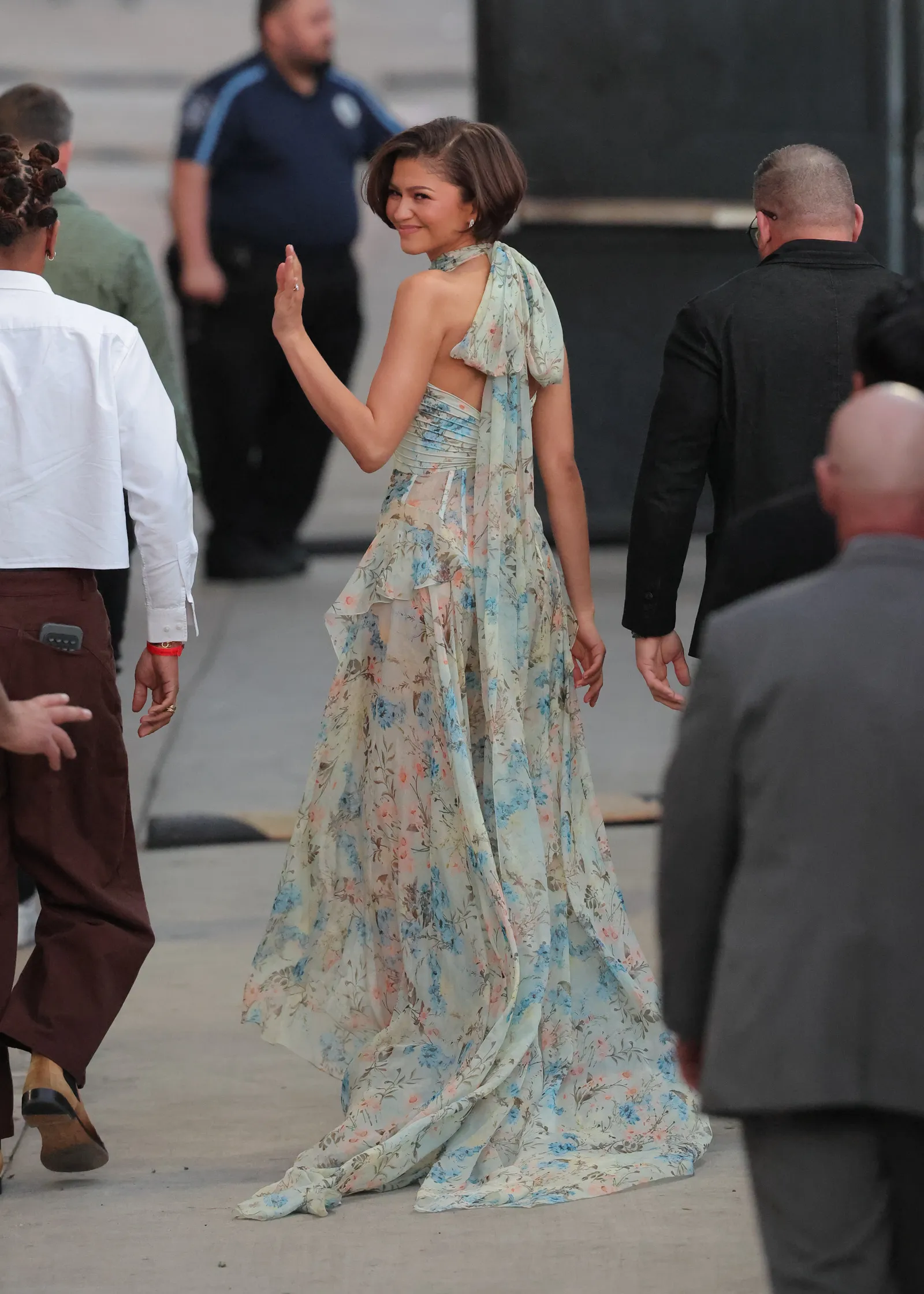 Zendaya did it again. Op weg naar de studio van de show van Jimmy Kimmel in New York bevestigde de actrice – die we binnenkort kunnen bewonderen in haar nieuwe films The Drama van Kristoffer Borgli, Spider-Man: Brand New Day van Destin Daniel Cretton, waarin ze samen met haar vermeende kersverse echtgenoot Tom Holland speelt, en in Dune: Part 3 van Denis Villeneuve – haar status als mode-icoon. Zo spotten we Zendaya in een zwierige lentejurk die perfect is om het warmere seizoen in te luiden.