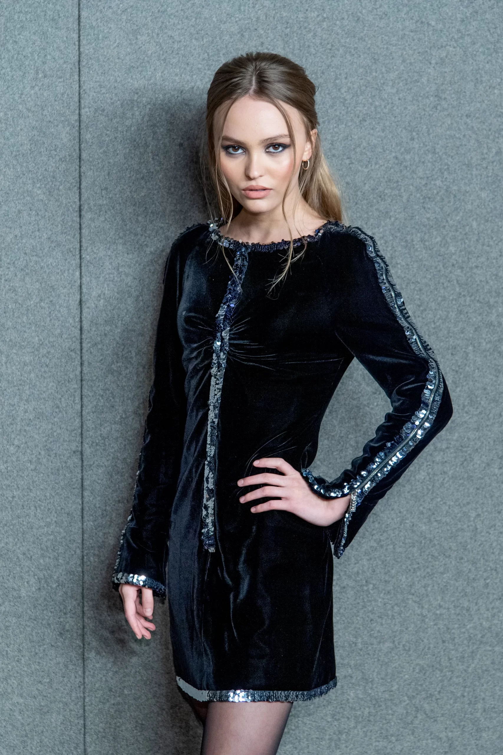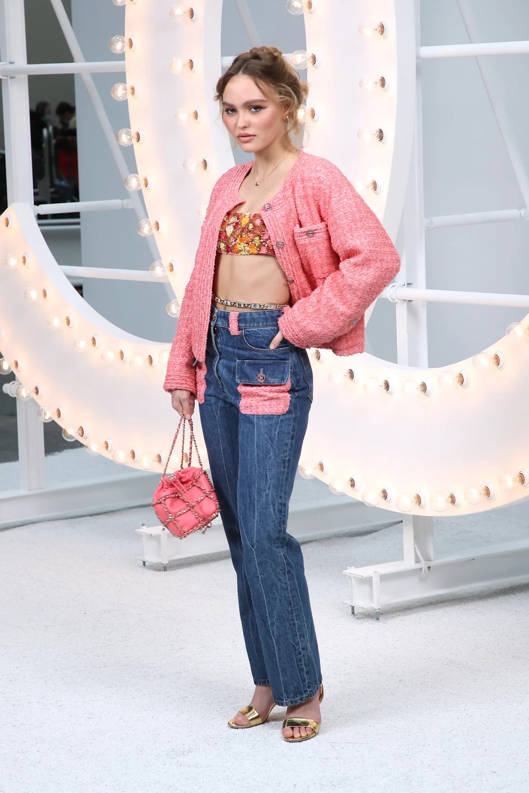 Lily-Rose front row bij Chanels lente/zomer 2022-show tijdens Paris Fashion Week.