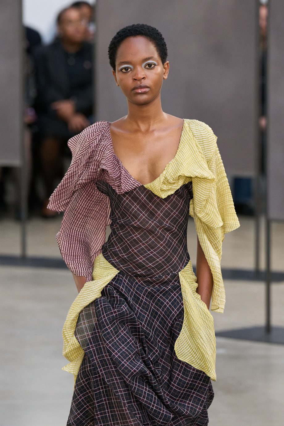 Door naar vuistregel twee: de grootte van de prints. Een grove ruit – zoals de Schotse ruit of de iconische print van Burberry – kun je het beste combineren met fijne print, zoals een micro-ruit of stipjespatroon. Opnieuw geen must, maar wel geschikt om een look in balans te brengen.