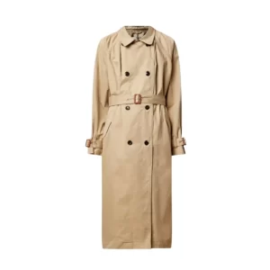 Haar ensemble maakte ze compleet met een ovale zonnebril, die ons aan de seventies doet denken. Maar haar allure zat ‘m in de keuze van haar jas: een trenchcoat die op het eerste gezicht simplistisch lijkt, maar die door zijn details precies de juiste hoeveelheid coolness krijgt. De jas is volledig van katoen, heeft een tweekleurige stof aan de achterkant en strikjes op de manchetten. Waar shop je de trenchcoat van Miller? Bij Mango. Als onderdeel van een modecollab met Victoria Beckham.