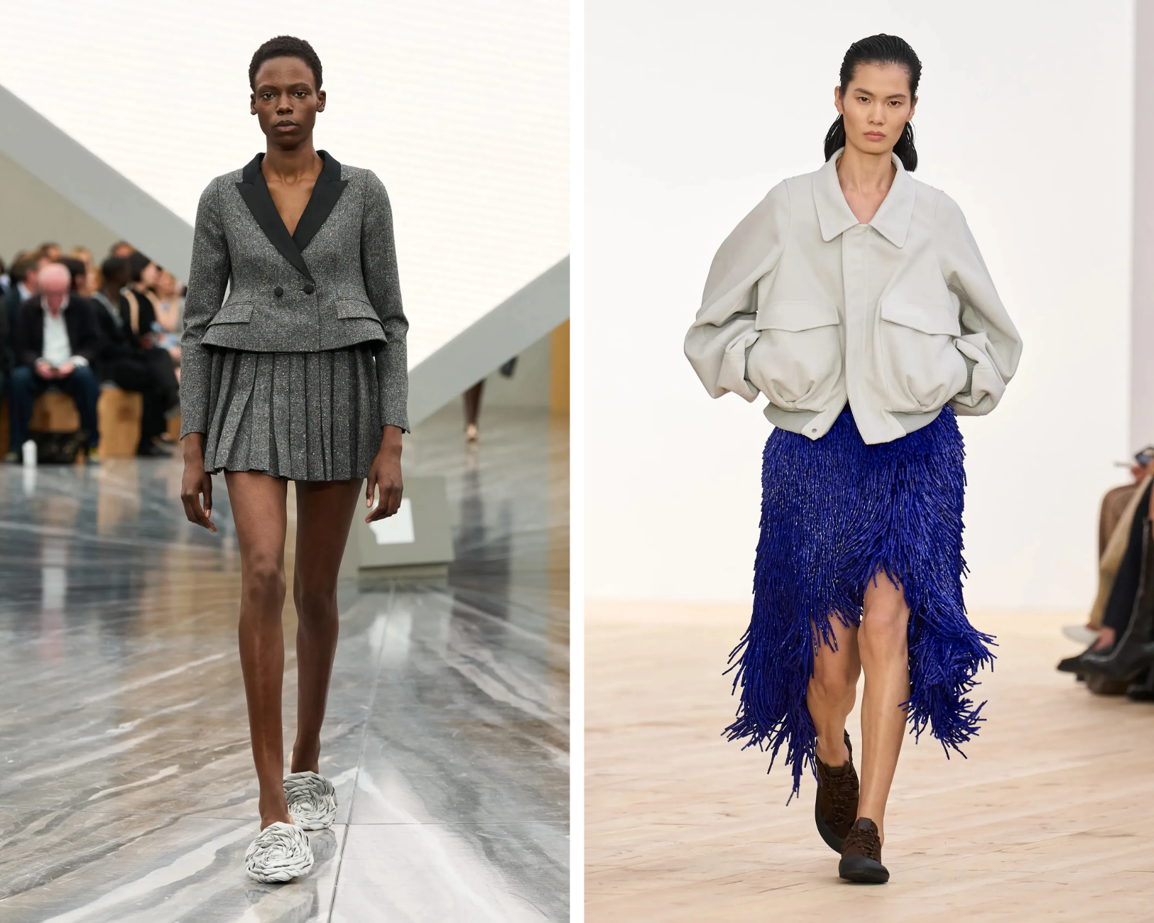 De shows voor lente/zomer 2026 vertaalden het silhouet in onder meer nylon, wol, leer, gabardine en tweed (naast andere materiaalmengsels). Een van de meest opwindende – en draagbare – stijlen kwam van Matthieu Blazy. Hij opende zijn eerste Chanel-show met een broekpak geïnspireerd op een exemplaar uit Blazy’s eigen garderobe, aangepast en ingekort bij de taille. Andere ontwerpen, die later in de collectie volgden, verschenen in samenwerking met Charvet, de overhemdenmaker van Place Vendôme. Ze waren voorzien van de kenmerkende ketting van het modehuis in de zoom.