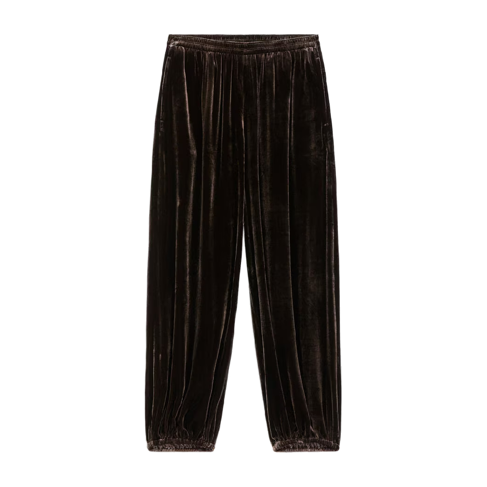 Het is niet echt een verrassing dat fluwelen broeken – controversieel, ja, maar ook een klassieker tijdens het feestseizoen – de laatste tijd overal opduiken. De jaren negentig hebben een bepaalde greep op ons, die om de paar jaar afneemt en weer toeneemt, maar nooit echt verdwijnt (zelfs als de wereld in puin ligt en AI onze banen overneemt, zal er nog steeds sprake zijn van een comeback van de jaren negentig). Voeg daar een vleugje jaren 2010, Tumblr-achtige nostalgie en een terugkeer naar over-de-top feestkleding aan toe, plus een verschuiving naar tweedehands aankopen, en de heropleving van fluwelen broeken is volkomen logisch.