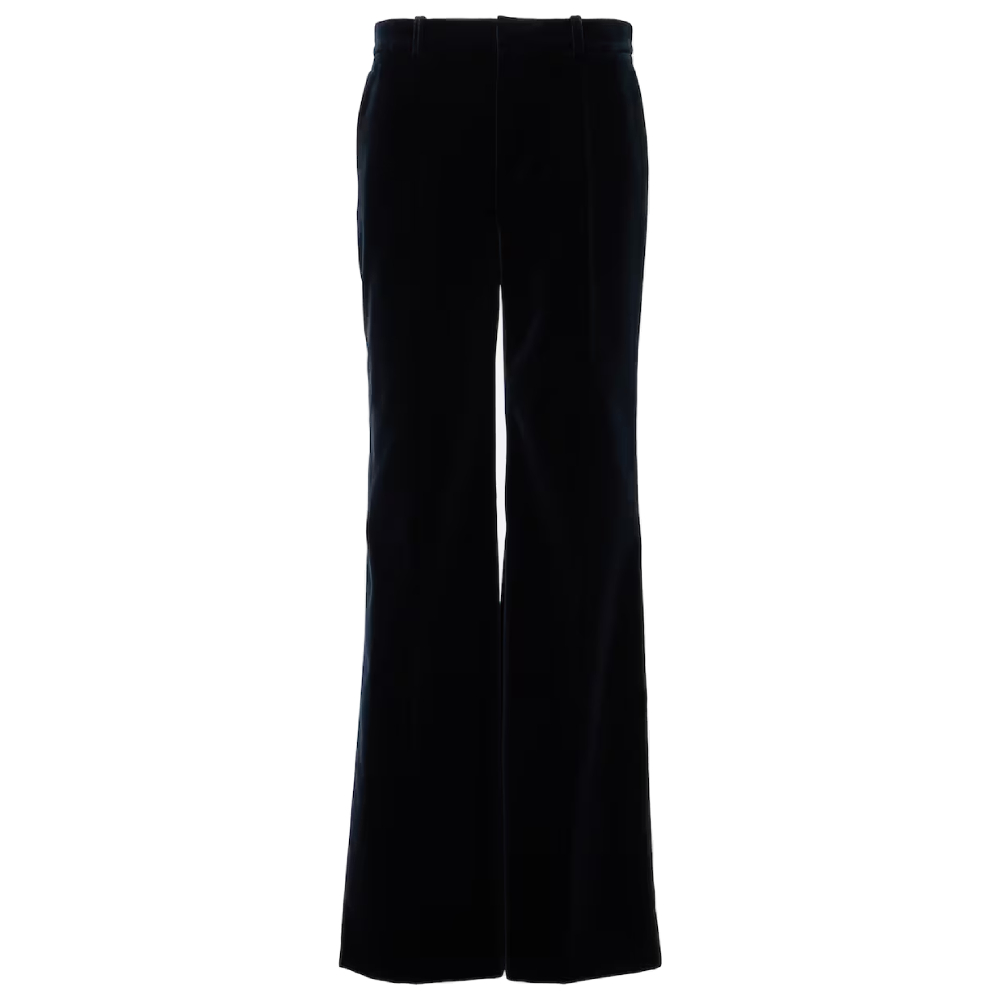 De fluwelen broek vond in de jaren 2010 hun weg terug naar de harten, hoofden en kledingkasten van mensen – rond dezelfde tijd dat iedereen vreemd genoeg gek werd op chokers en creepers – om vervolgens weer snel te verdwijnen. Maar nu maken fluwelen broeken weer een comeback. Van de baggy varianten van Celine’s lente/zomer 2026-collectie tot een terugkeer naar velours pakken bij zowel Giorgio Armani als Dior, plus allerlei hooggetailleerde pantalons in de Resort 2026-collectie van Gucci – het is alsof ze nooit weg zijn geweest!