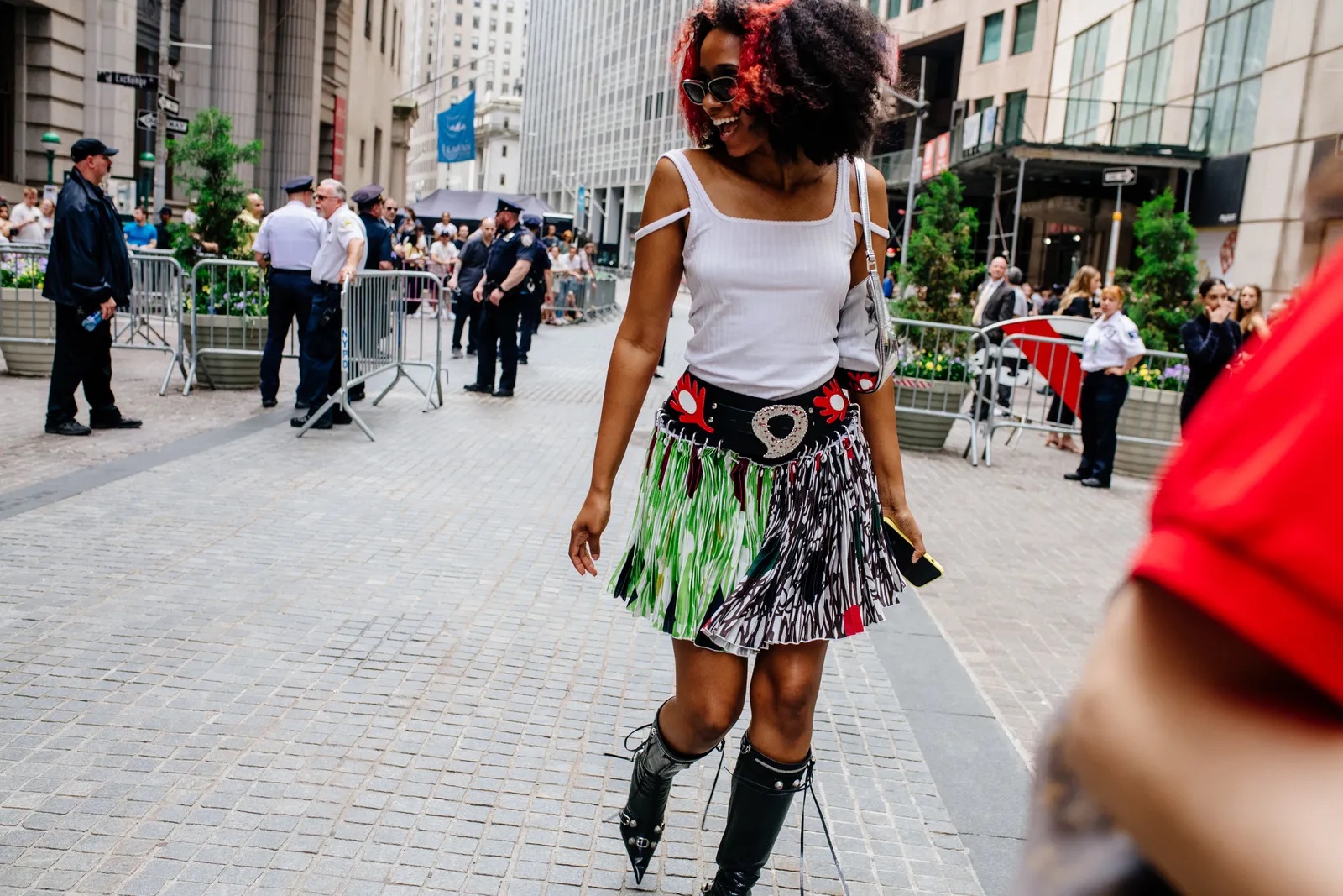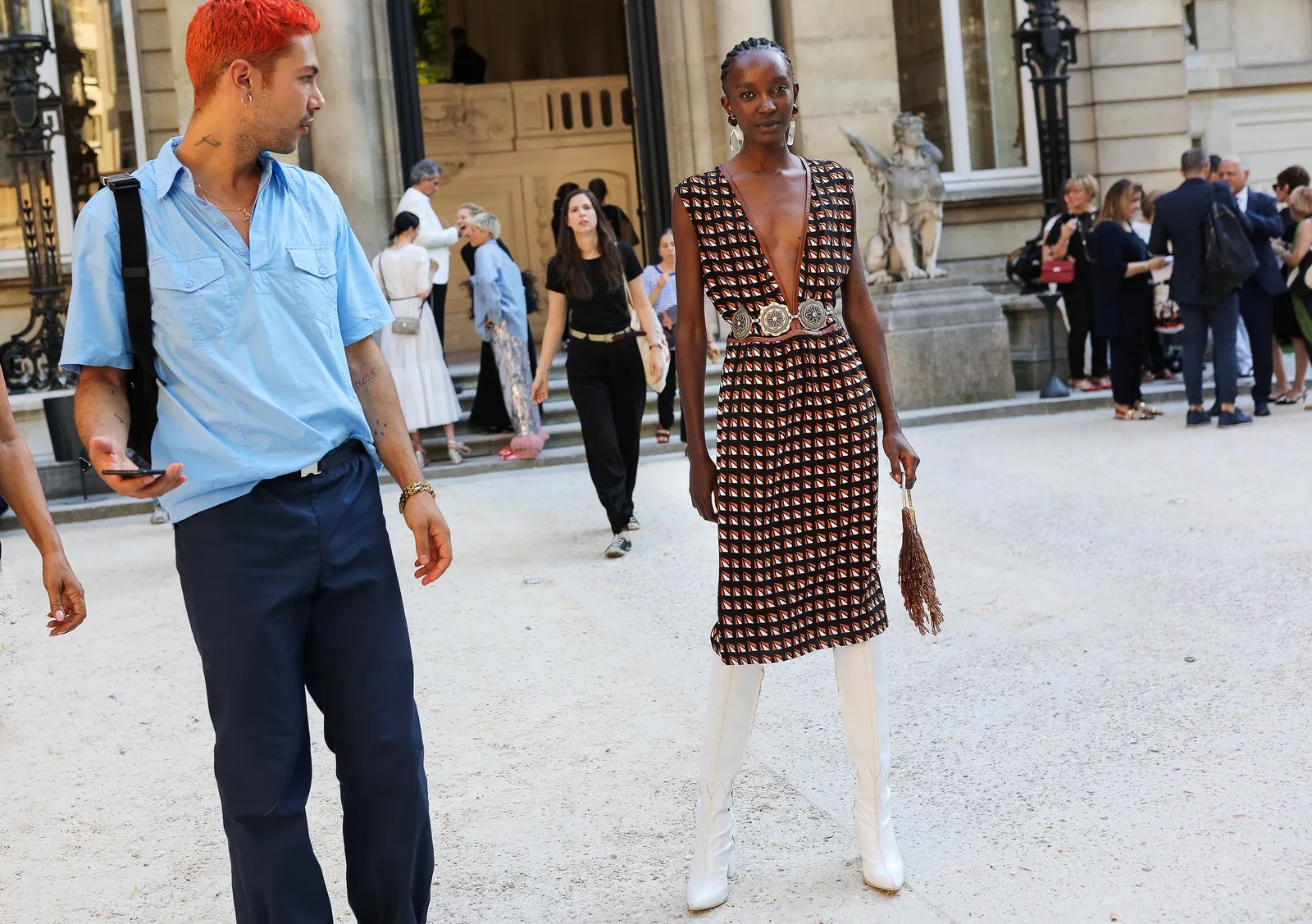 Waar cowboylaarzen al regelmatig aan de voeten van menig streetstyle-ster te zien waren, passeren deze zomer allerlei soorten laarzen de revue. Van Balenciaga’s puntige La Cagole-ontwerp tot gekleurde exemplaren van Louis Vuitton, op straat tijdens de afgelopen modeweken blijken kniehoge laarzen het favoriete schoeisel te zijn tijdens warmere dagen. Ze worden in de mix gegooid met denim, athleisure en zelfs strakke bodyconlooks, wat de veelzijdigheid van de stappers aantoont.