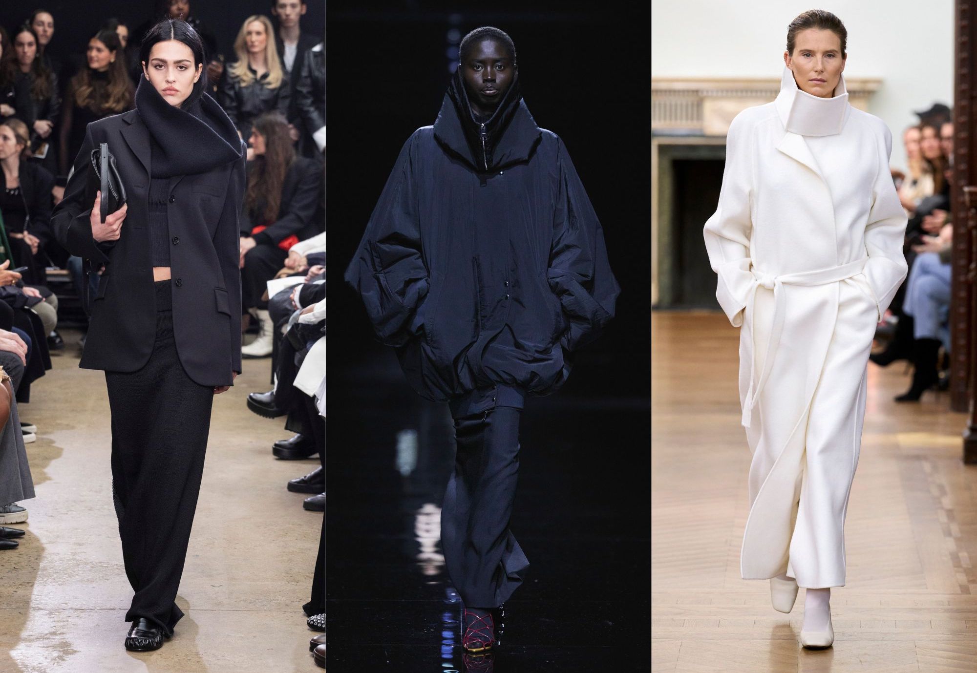 Draping blijkt een van de chicste manieren om een minimalistische outfit een interessante look te geven; de vallende stoffen zorgen voor beweging, waardoor de outfit op een subtiele manier opvalt. De herfst/winter 2024-collectie van Khaite was volledig gefocust op deze techniek, al kwam draping als detail ook terug bij het Oekraïense label Bevza en in de collectie van Michael Kors Collection. Bij die laatste twee merken hoef je niet meer zelf een trui over je jas te hangen: die combinatie wordt volledig geïntegreerd in gedrapeerde truien, jassen en jurken.