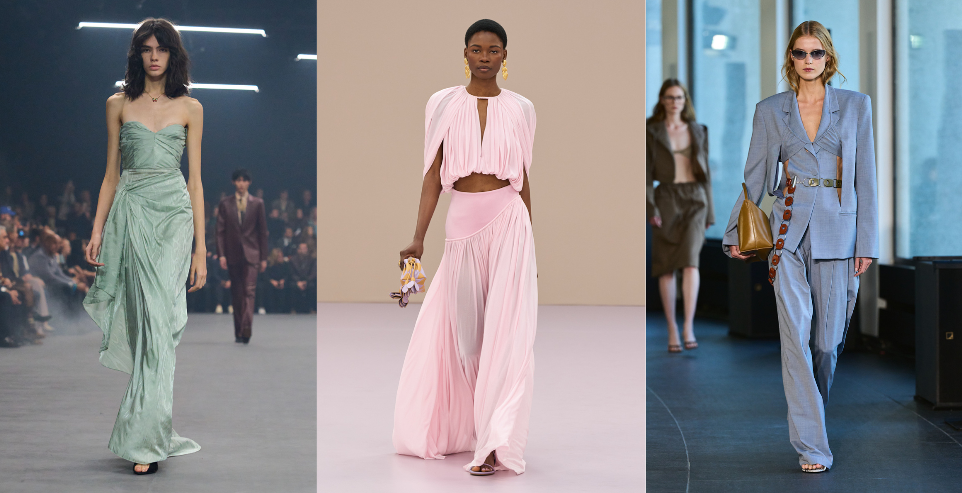 Na seizoenen van pistache en de felle groengele kleur die met ‘brat summer’ gepaard ging, is het tijd voor een nieuwe groenvariant. We maken ons op voor de terugkeer van mint. Zowel onder streetstylers als op de runways voor lente/zomer 2026 was deze pasteltint ruim vertegenwoordigd. We zagen jurken met boudoir-elementen bij Balenciaga, strakke silhouetten (met draperie als verrassende twist) in deze kleur bij Armani Privé – evenals, over draperieën gesproken: mintgroene avondjurken bij Valentino. Voor elke designer geldt overigens dat we de kleur in meer ontwerpen terugzagen dan die we hier uitlichten. Blazers, blouses, schoenen; niets ontspringt de dans wanneer het aankomt op mint als dé pastelkleur voor de zomer van 2026.