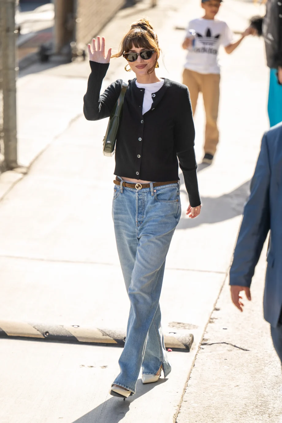 Hoe meer we de laatste tijd om ons heen keken (en we hebben veel gekeken), hoe meer we dit silhouet in de modewereld zagen opduiken, van beroemdheden tot streetstyle-sterren. Actrice Dakota Johnson droeg de hare met puntige hakken en een vest in LA, terwijl Margot Robbie eerder deze maand in Londen werd gefotografeerd in een omgeslagen paar, gecombineerd met hakken en een zwart sweatshirt. Een minimalistische aanpak die teruggrijpt op de sobere vrijetijdskleding van sterren als Jennifer Aniston en Gwyneth Paltrow in de jaren negentig.