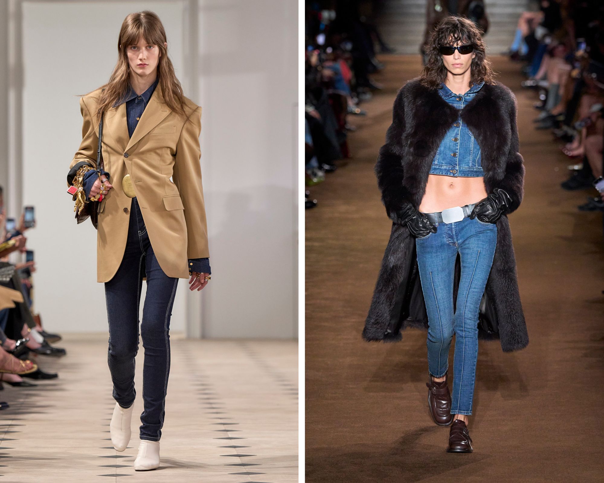 Dat Hedi Slimane’s Celine vol skinny jeans zat, was niet zo gek: de ontwerper heeft de indie sleaze-look zowat uitgevonden. Maar als we naar het nieuwe Celine van Michael Rider kijken, die dit jaar zijn debuut maakte bij het modehuis, zien we ook broeken met een smalle pasvorm. Eerder, in maart 2024, pleitte ook Miu Miu voor de terugkomst van de broek. Modellen als Rianne van Rompaey en Mica Arganaraz droegen een skinny op een moderne manier: dubbel denim, met brogues en faux fur-jassen. Mijn eerste gedachte? Hell no.