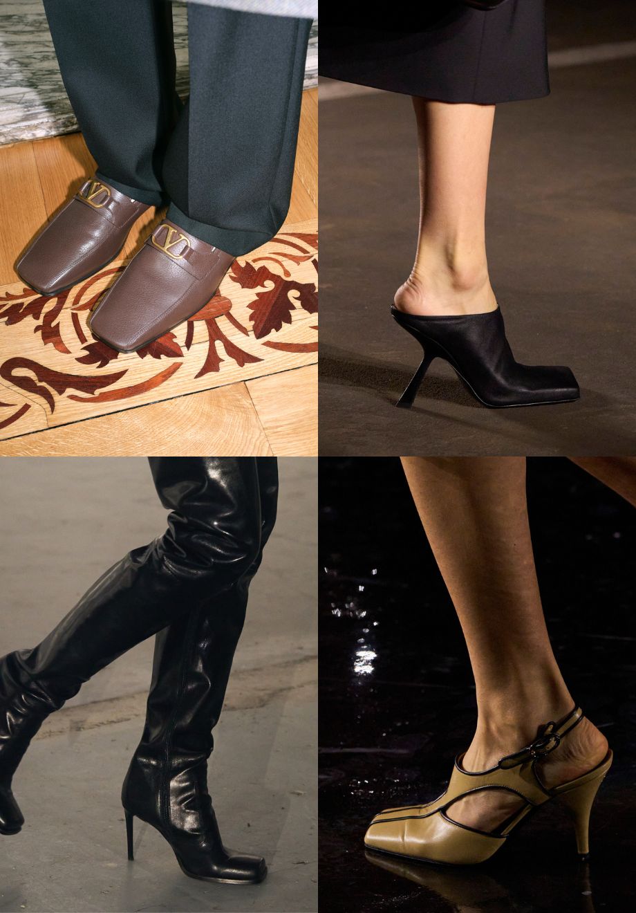 We nemen de schoenen van dit modeseizoen onder de loep. Nieuwe schoenentrends duiken overal op: van satijnen schoenen tot soklaarzen. Onze inspiratie? Regelrecht van de catwalk. Hier krijgen we lucht van een terugkerende neus: de schoenen met vierkante neus.
