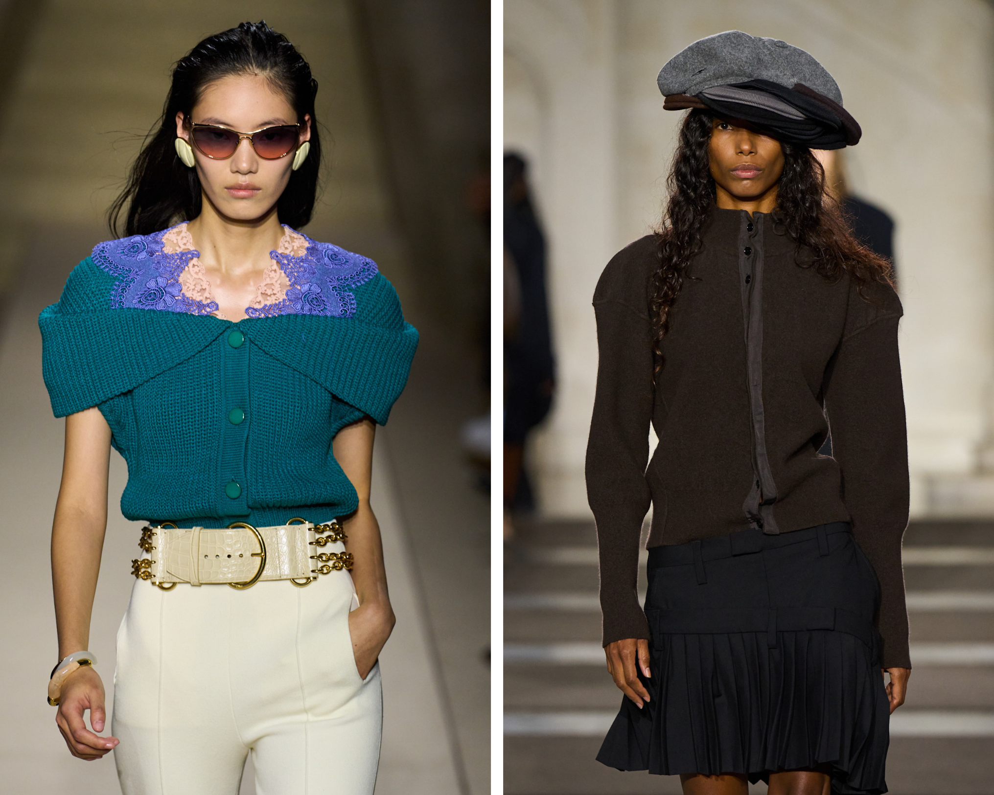 Silhouetten met brede schouders waren een belangrijke speler op de catwalks voor het lente/zomer 2026-seizoen. De focus op de schouders zagen we bijvoorbeeld terug in de kenmerkende tweeds bij Chanel en de leren bovenkleding bij Saint Laurent. Extra opvallend was dat breisels ook werden meegenomen in deze trend.
