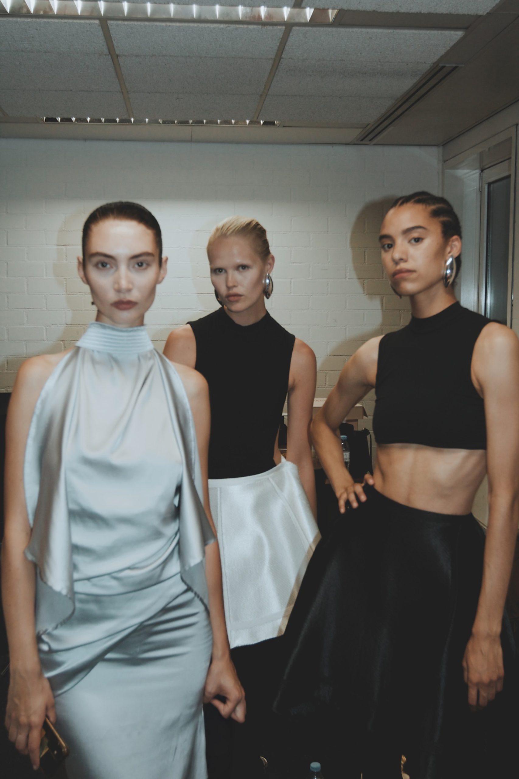 Ze draagt een jurk van zwart katoen, met strategische cut-outs die tegelijkertijd verhullen en onthullen. Het is een silhouet dat we herkennen van haar lente/zomer 2025-show, die vorig jaar plaatsvond in het atelier van de kostuumafdeling van de Nationale Opera & Ballet. Daar werden gasten in stilte naartoe geleid, langs backstagetrappen en geheime dienstliften, terwijl in de Grote Zaal een voorstelling bezig was.