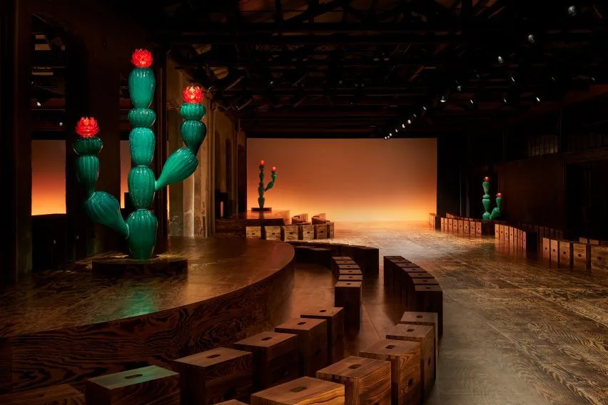 Bottega Veneta zette een spektakel van een herfst/winter 2024-show, met nieuwe kleuren en vormen in de hoofdrol, neer tijdens Milan Fashion Week. De aandacht ging dit keer echter niet alleen uit naar de rok over broek-trend, oversized jassen en een aantal (rode) pronkstukken. Het decorontwerp bevatte namelijk een speciale editie van Cassina’s Le Corbusier’s LC14 Cabanon-kruk in gebrand hout. Voor de show in Milaan, geïnspireerd op een reis door Zuid-Italië, kon de fashion crowd, waaronder Kate Moss, Anna Wintour en Julianne Moore, plaatsnemen op een van de 350 houten krukken die tussen de reusachtige bloeiende cactussculpturen van Murano-glas geplaatst waren. En ja, nu willen wij ook zo’n exemplaar in ons interieur.