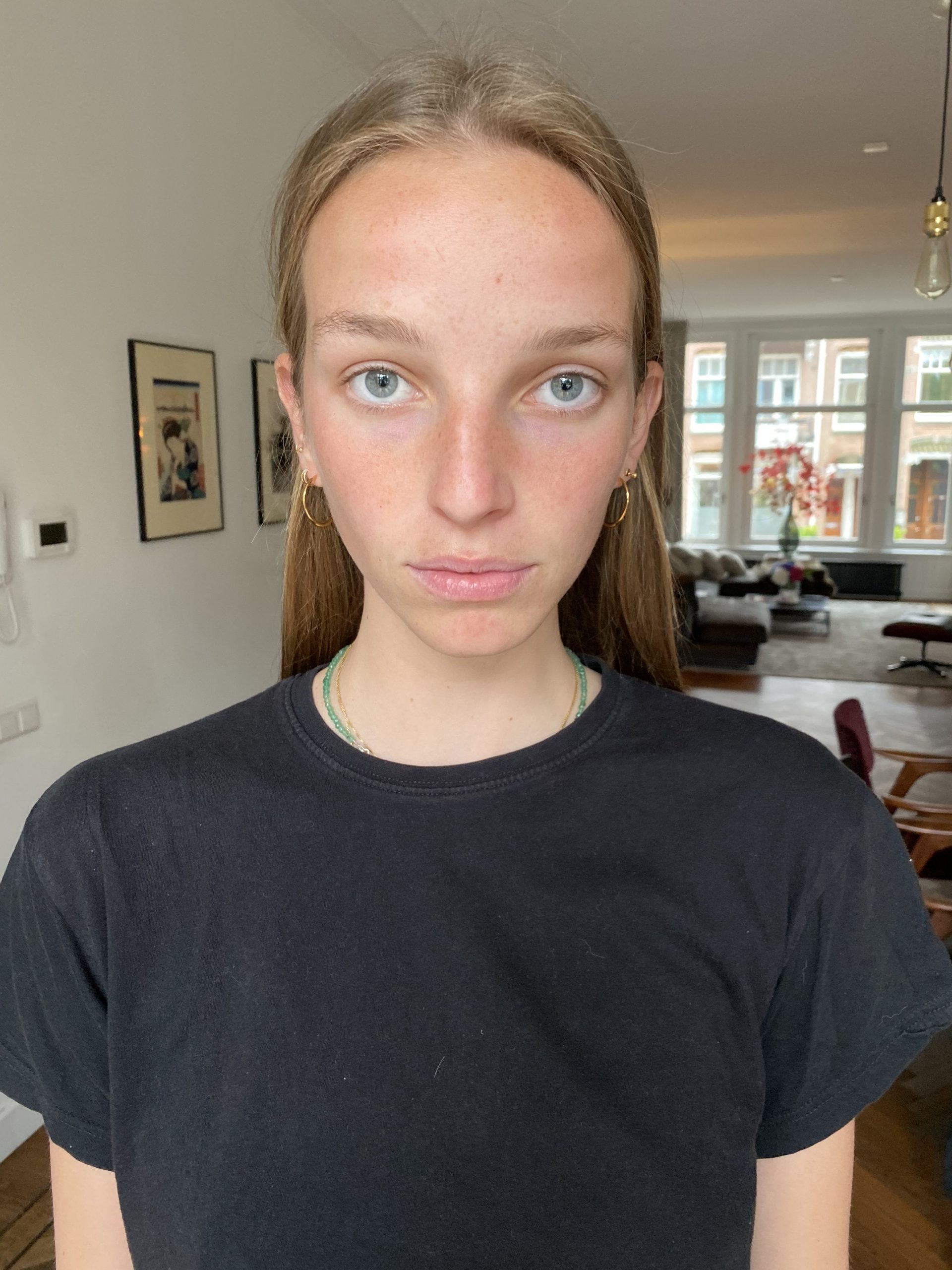 Heb je een bepaald bedritueel? “Ik gebruik weinig producten voor mijn huid, want die is erg gevoelig. Door al die shoots en de vele make-up heeft mijn huid rust nodig. Als ik een droge huid heb gebruik ik Skin Food van Welleda op mijn gezicht. Dat is enorm voedend. Een masker gebruik ik ook af en toe. Onlangs kocht ik op Schiphol Origins Drink Up Intensive Overnight Mask, eentje met de geur van abrikoos. Tien minuten intrekken en eraf halen. That’s it. Super chill voor on the go of voor in het vliegtuig.”