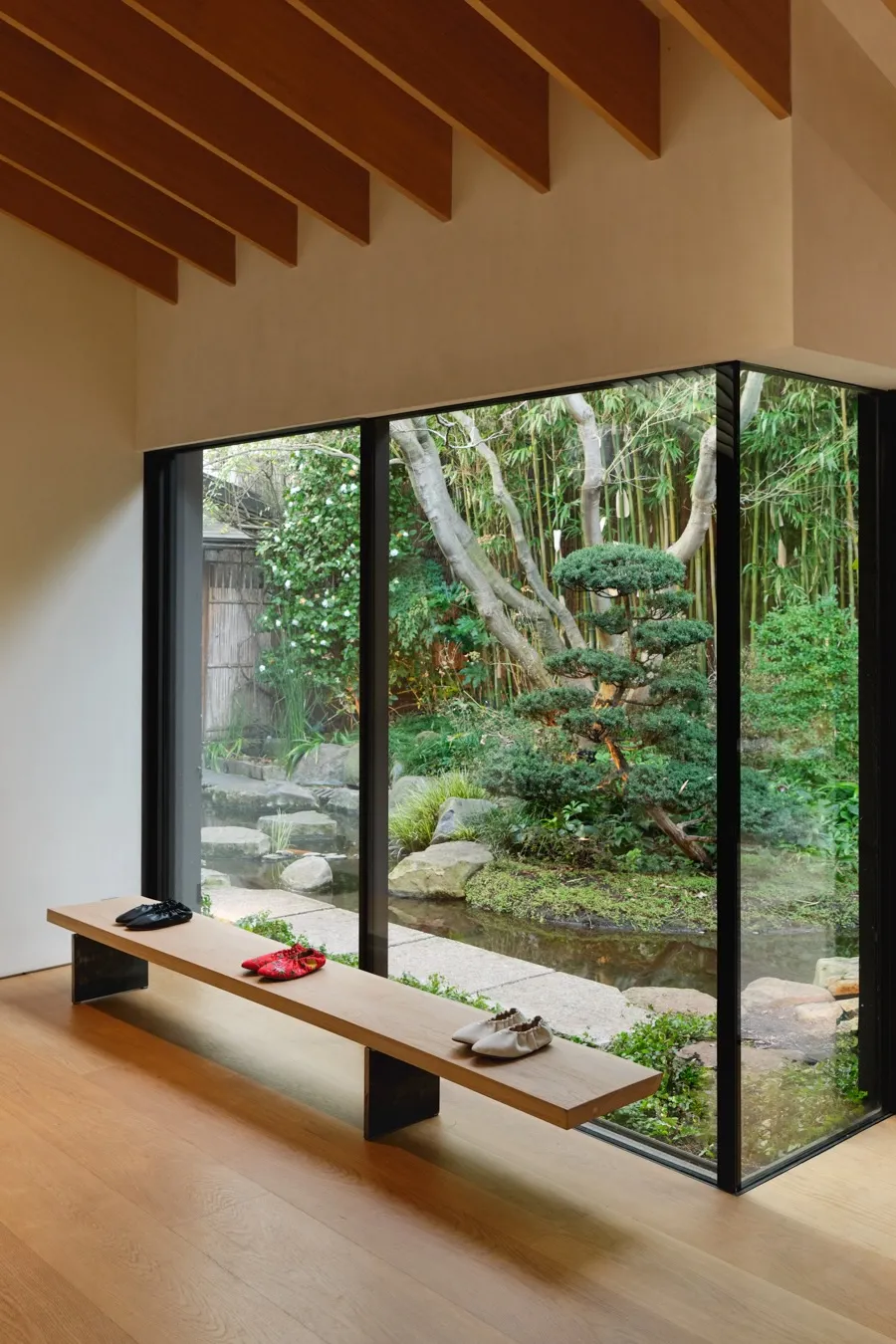Het huis strekt zich uit over drie verdiepingen en is om een traditionele Japanse tuin heen gebouwd, die een ware lichtbron is. Kenzo Takada kreeg voor het ontwerpen hulp van zijn partner, architect Xavier de Castella, tevens zijn rechterhand in de mode. Zodra je binnenkomt, ontpopt de plek zich als een eigentijdse tempel, een oase van rust waar je wordt verwelkomd door de bijna heilige, ceremoniële sfeer. Eén stap door de voordeur en je kan de drukte van de stad je nog maar moeilijk voorstellen. De ruimte was vroeger een messenfabriek. Het gebouw werd volledig gesloopt om plaats te maken voor dit verborgen en rustige perceel.