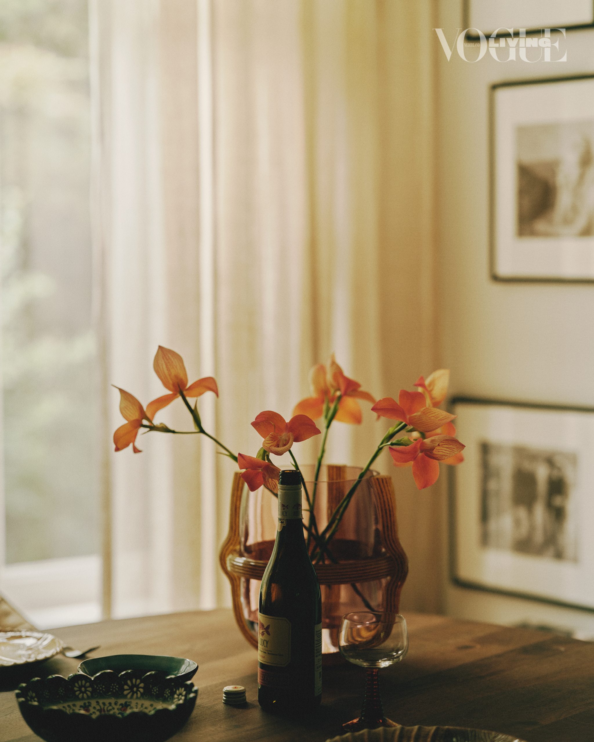Het paar heeft hulp gehad van interieurdesigner Martine Herselman van Edha Interieur in Amsterdam. ‘Zij heeft met mij het huis voor een deel ingericht. We zijn voor een combinatie van mid-century chic en boho-chic gegaan; retro-accenten en tijdloze ontwerpen samen met een wat avontuurlijker stijl, bijvoorbeeld souvenirs van onze reizen. Niet alles past dus direct bij elkaar.” Dat mag ook wel, voegt Ryan toe: “Onze inrichting hoeft niet helemaal strak te zijn. Het mag een beetje speels blijven.”