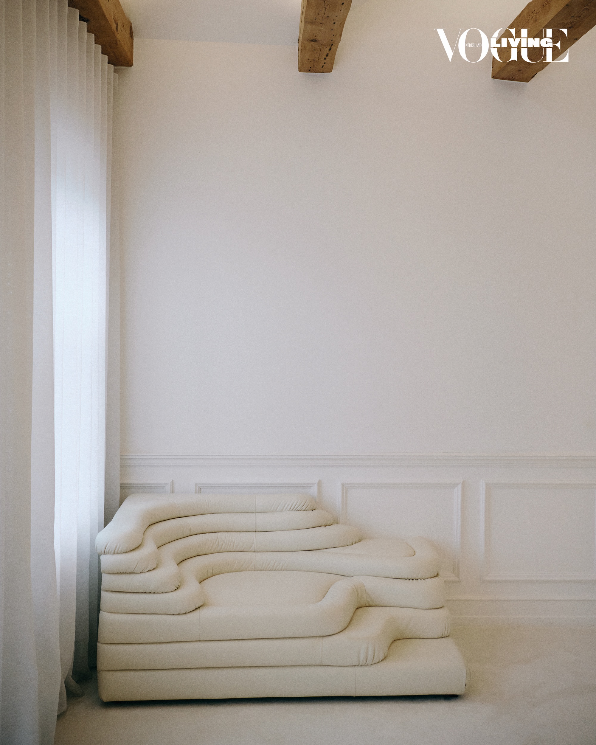 Dat ene meubelstuk waar ze het meest trots op is? “Oh, ik heb er zo veel, het verschilt echt per kamer. Zo hebben we een prachtige witte vintage Eames Lounge Chair waar ik dol op ben. Mijn oma had er een in het zwart en ik zie haar erin zittend nog zo voor me. Ik wilde een herinnering aan haar creëren, alleen dan in soft white. Ik ben ook superblij met onze vier zwarte De Sede-banken, die een te gek, speels sculpturaal eiland in onze keuken creëren, de plek waar we als gezin het meest rondhangen. We verplaatsen de banken continu, ze zijn zeer geschikt om verhalen op voor te lezen of op te relaxen. Het is leuk om iets onverwachts in een vertrek te creëren, af te wijken van de traditionele manier van een ruimte inrichten.”