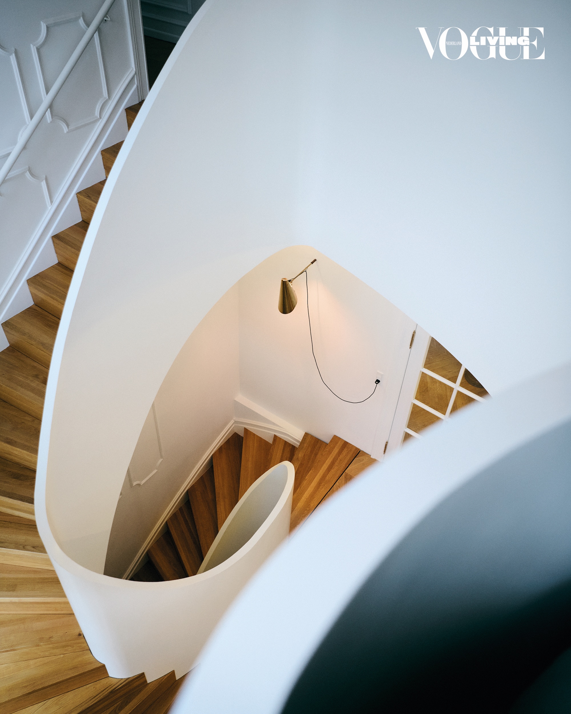 De entree vormde de grootste uitdaging, omdat ze hun zinnen hadden gezet op een eyecatching organisch vormgegeven stalen trap. “Het was makkelijker geweest om ’m van hout te maken, maar het staal vormt een interessant contrast met de stucco op de muren. We vonden een lieve oude man die elders in Denemarken woont en al diverse bijzondere trappen had ontworpen. Ook voor hem was de onze een uitdaging, omdat de hal vergeleken met de hotels en musea waarvoor hij eerder werkte uiteraard maar een kleine ruimte is. De juiste gradiënt, het verloop van de treden en de vorm uitvogelen kostte veel tijd.”
