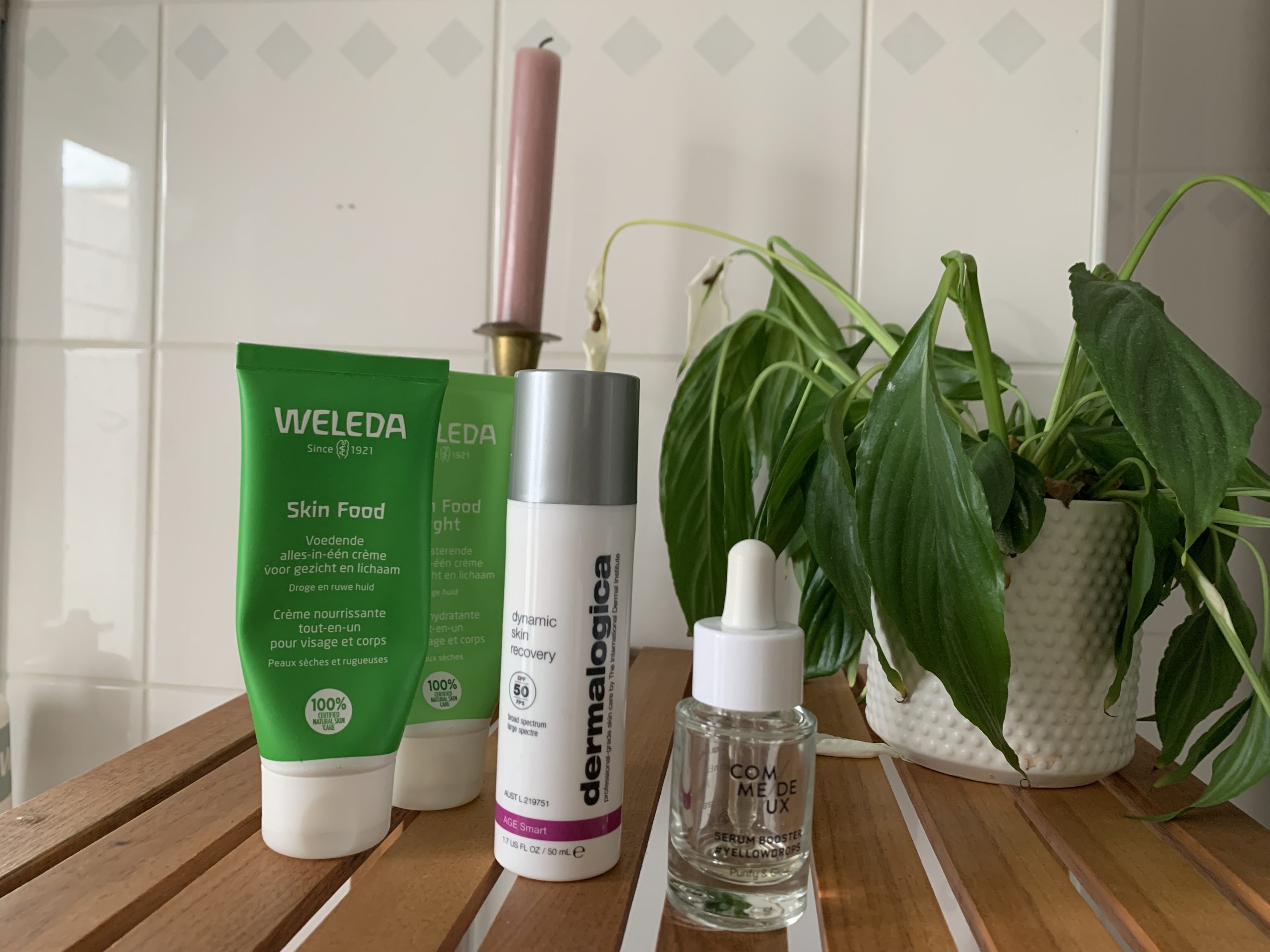Mijn benen kunnen in de winter ook wel wat gebruiken. Die zijn vaak droog en voelen aan als schuurpapier. Voor het slapengaan smeer ik ze in met Skinfood van Weleda. Zo blijven ze lekker vet.