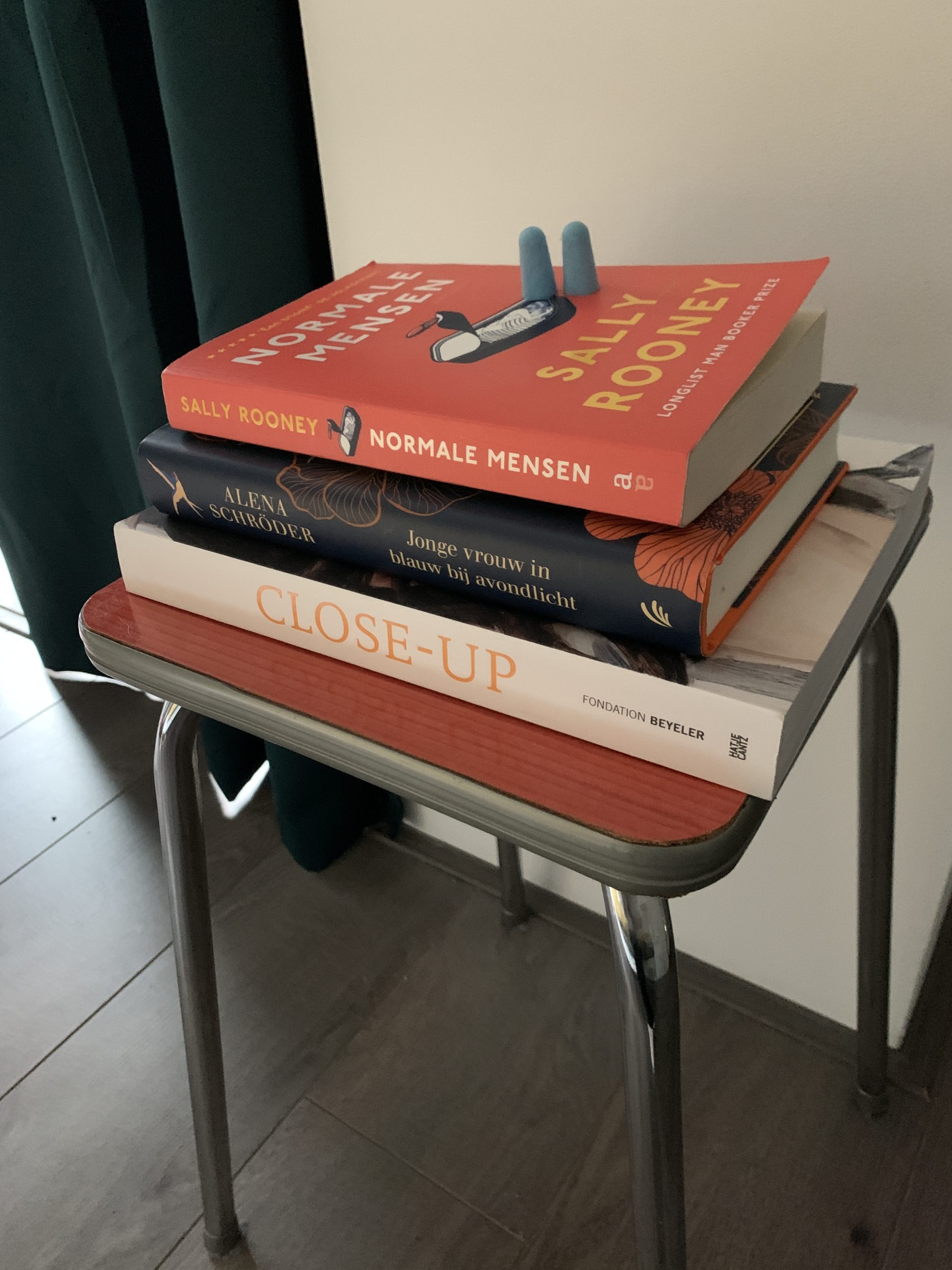 Wat voor nachtkastje heb je? “Ik moet je teleurstellen. Dat heb ik niet, want ik ben net verhuisd. Er staat nu een kleine jaren zeventig bijzettafel van Brabantia dat dient als nachtkastje. Daar liggen een aantal boeken op: Normale Mensen van Sally Rooney, maar ook kunstboek Close Up met allemaal kunstwerken van vrouwelijke kunstenaars.